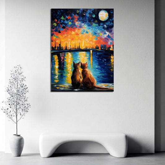 Romantisches Katzen Paar Pop Art Abendstimmung Wandbild