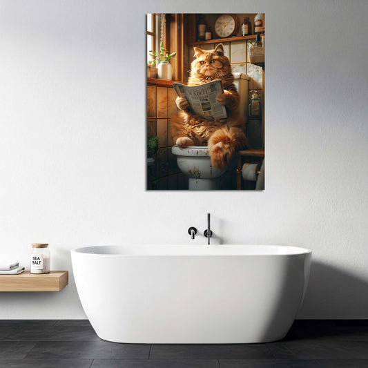 Humorvoll dicker Kater mit Zeitung Wandbild