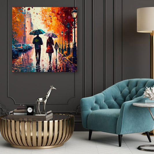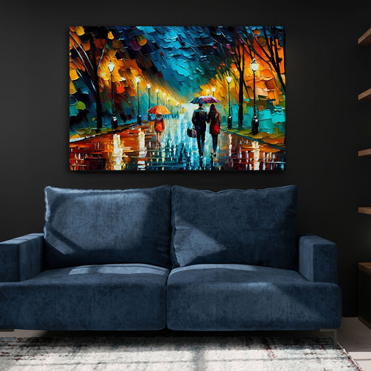 Abstrakt Menschen in Allee bei Regen Wandbild Kunstwerk