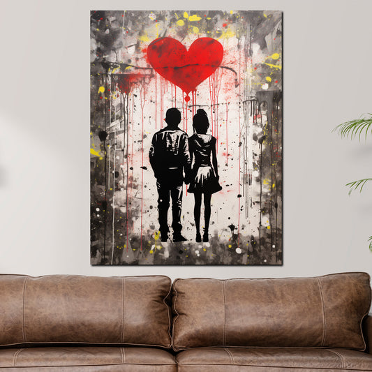 Street Art Liebespaar mit rotem Herz Wandbild Kunstwerk