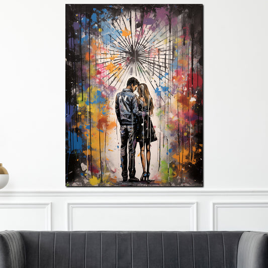 Street Art verliebtes Paar Colour Splash Wandbild Kunstwerk