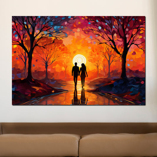 Verliebtes Paar im Sonnenuntergang Wandbild Kunstwerk