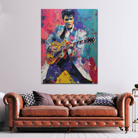 Bunt Musiker Elvis Porträt Rock n Roll Ikone Wandbild