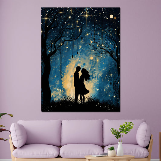 Paar unter Sternenhimmel Romantik Wandbild Kunstwerk
