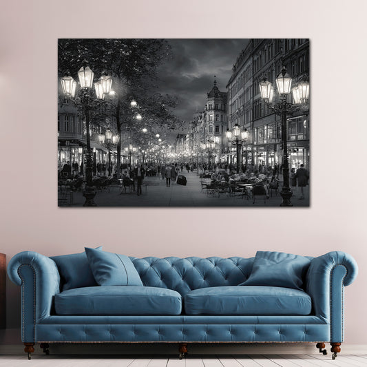Schlossplatz Stuttgart Innenstadt bei Nacht schwarz weiß Wandbild