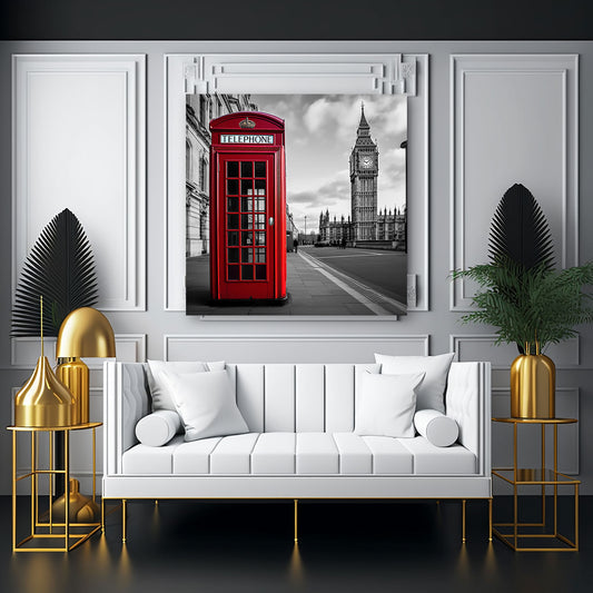 London schwarz weiß mit roter Telefonzelle Wandbild Kunstwerk