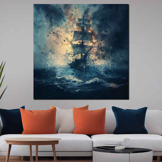 Segelschiff im Sturm auf offener See Wandbild Kunstwerk