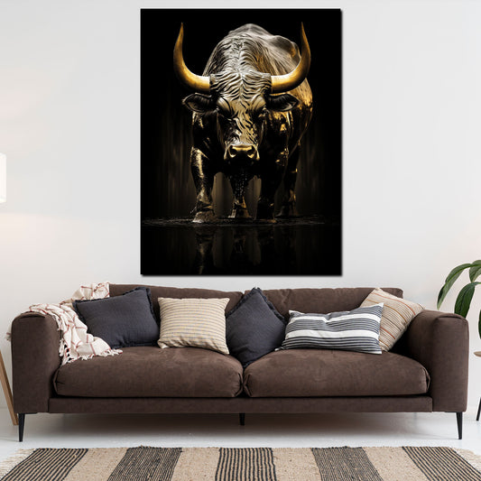 Stier mit abstrakten Hintergrund Gold Style, Tiere Wandbild Kunstwerk