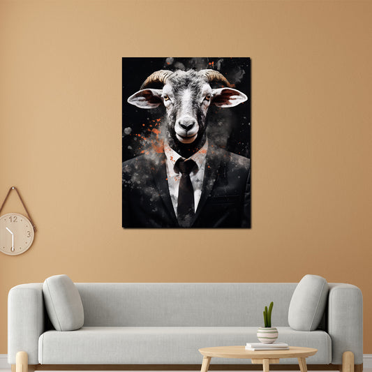 Ziegenbock im Anzug Dark Style Wandbild Kunstwerk