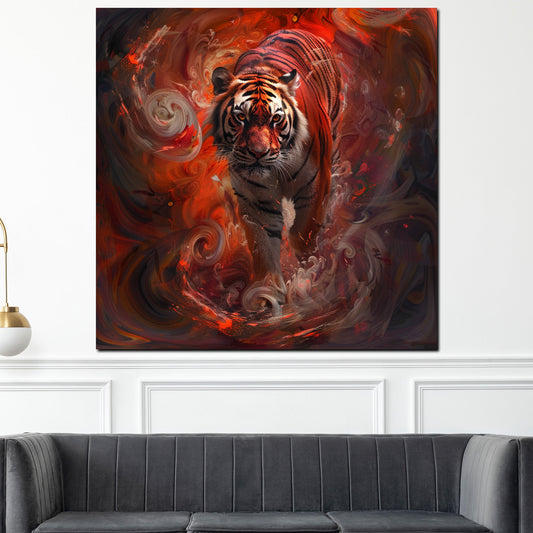 Abstrakter Tiger in dynamischem Rot Wandbild Kunstwerk