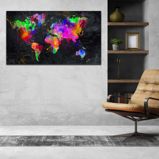 Pop Art Weltkarte bunt Graffiti Style Wandbild Kunstwerk
