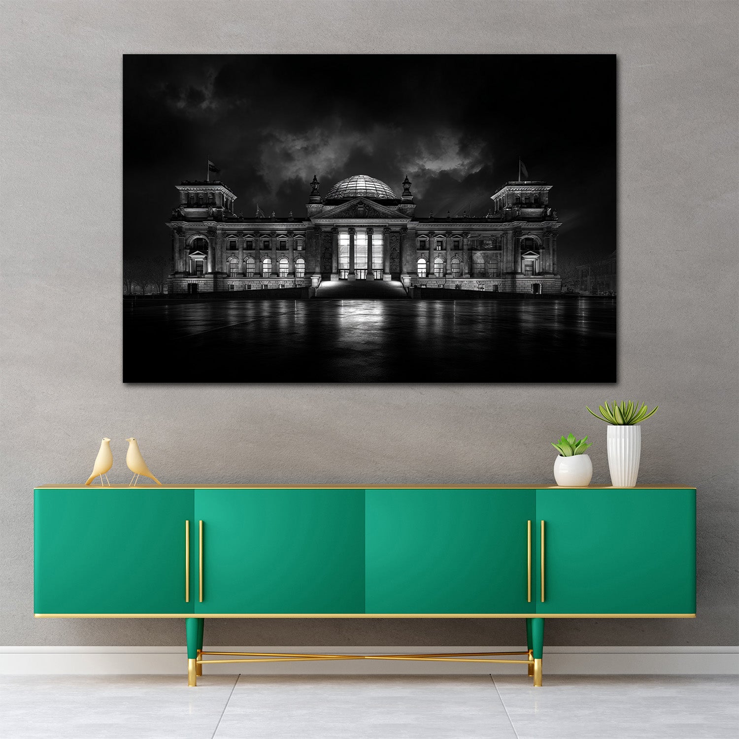 Berliner Reichstag dramatische Lichtstimmung bei Nacht Wandbild