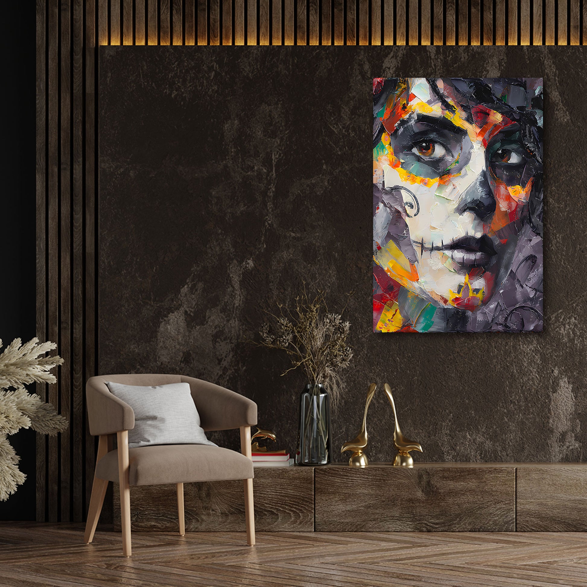 Gesicht mit Totenschminke kräftige Pinseltechnik Wandbild
