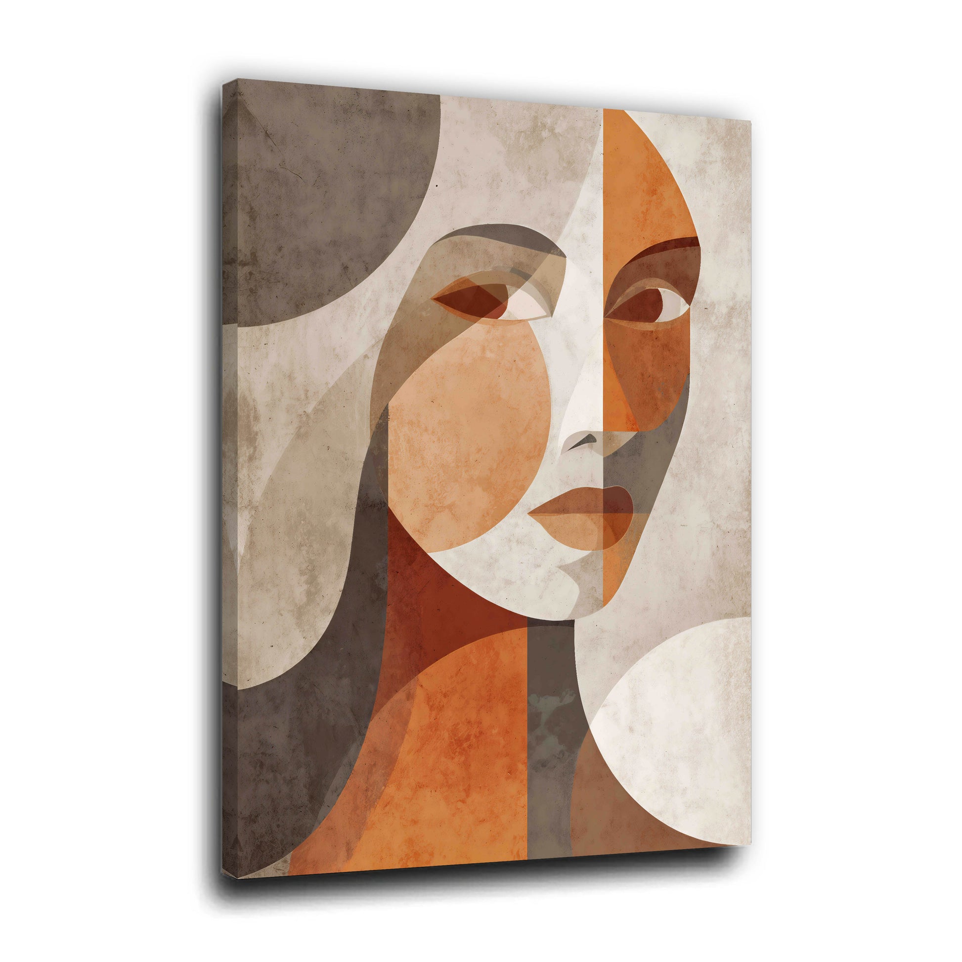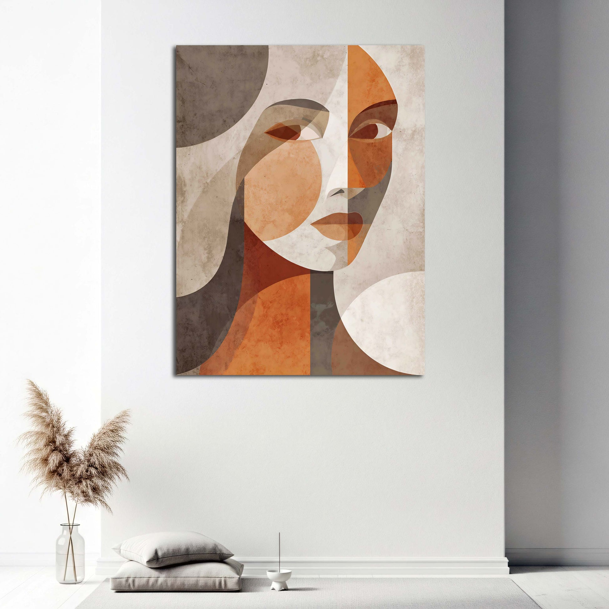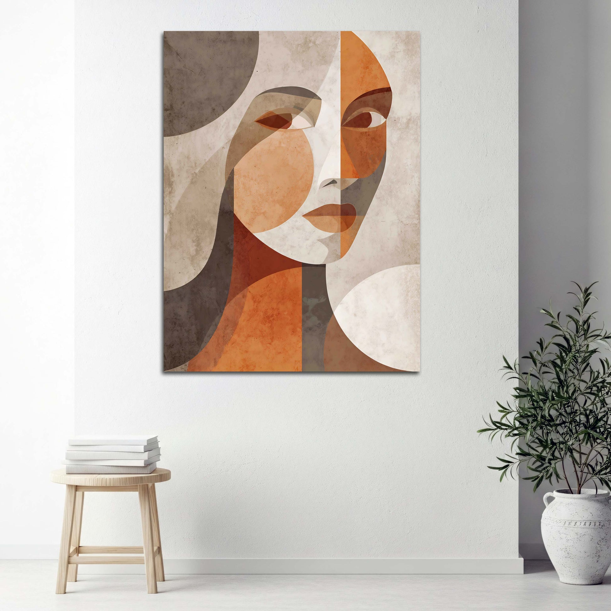 Porträt Frau geometrisch warmes Farbspiel Retro Wandbild