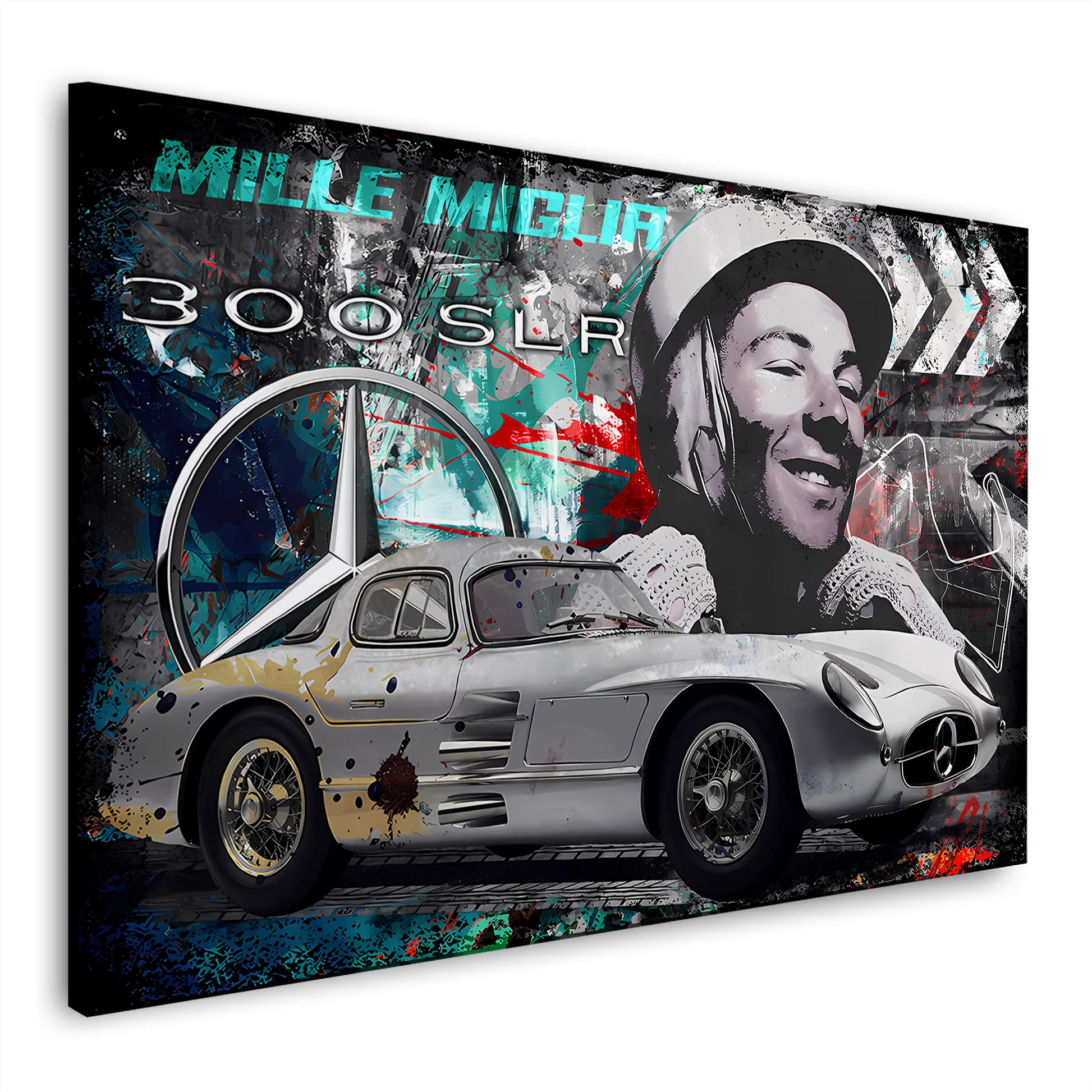 Silberpfeil Mercedes Klassiker Fahrerportrait Motorsport Wandbild