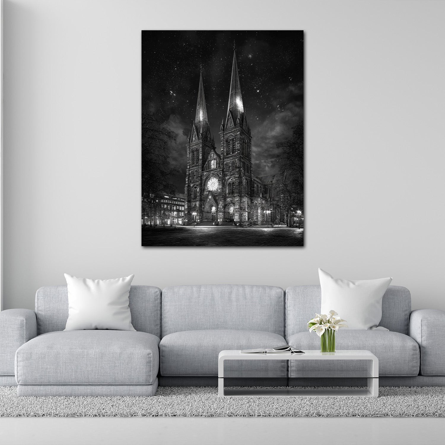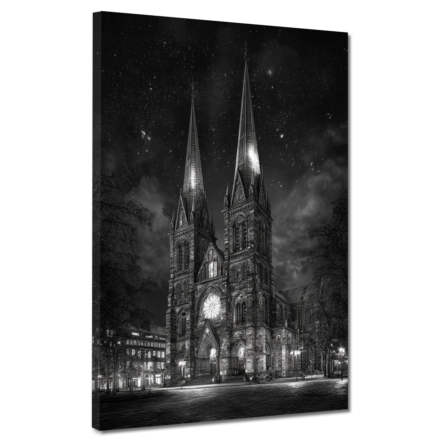 St. Petri Dom Bremen bei Sternenhimmel schwarz weiß Wandbild
