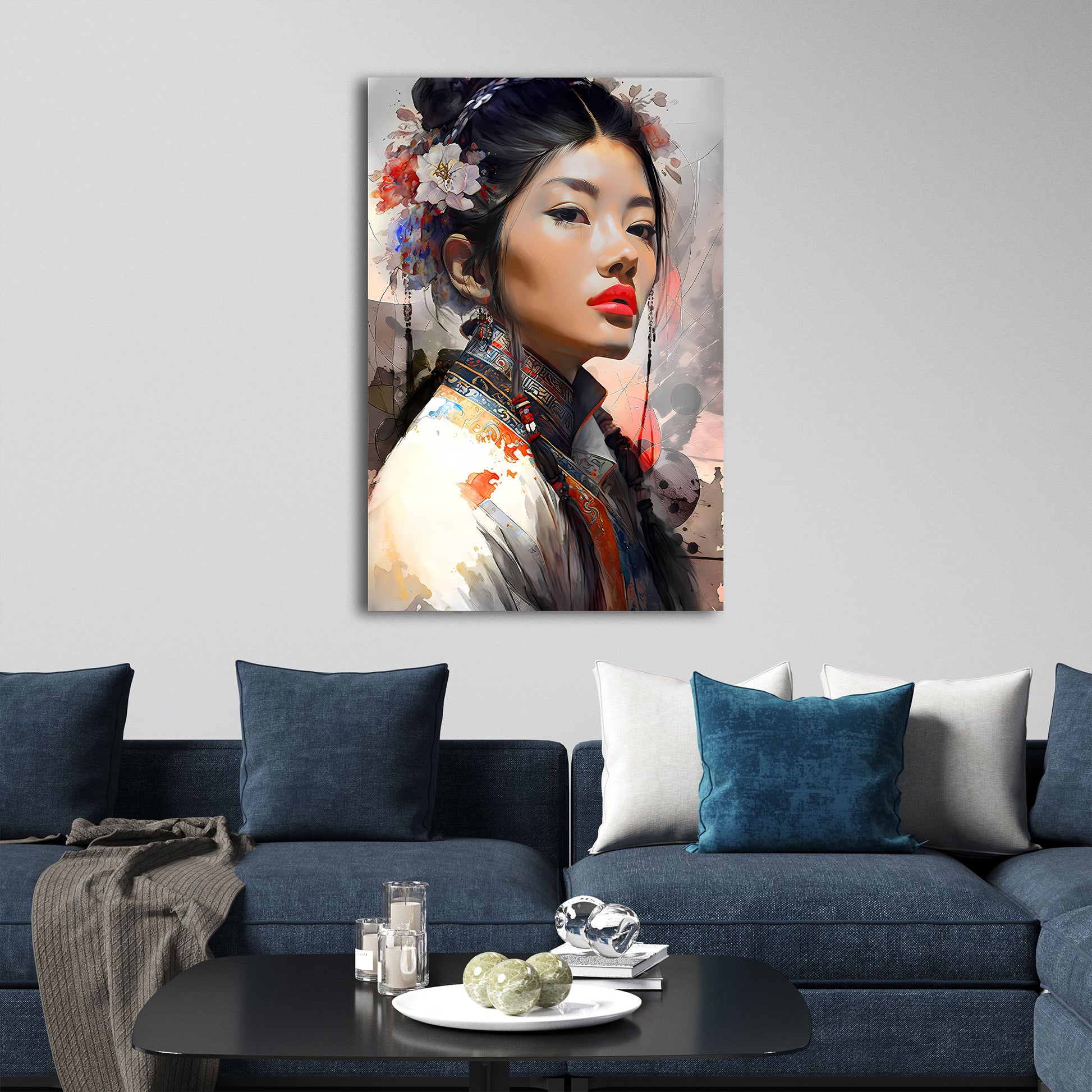 Stolze Frau asiatisch rote Lippen modern Wandbild
