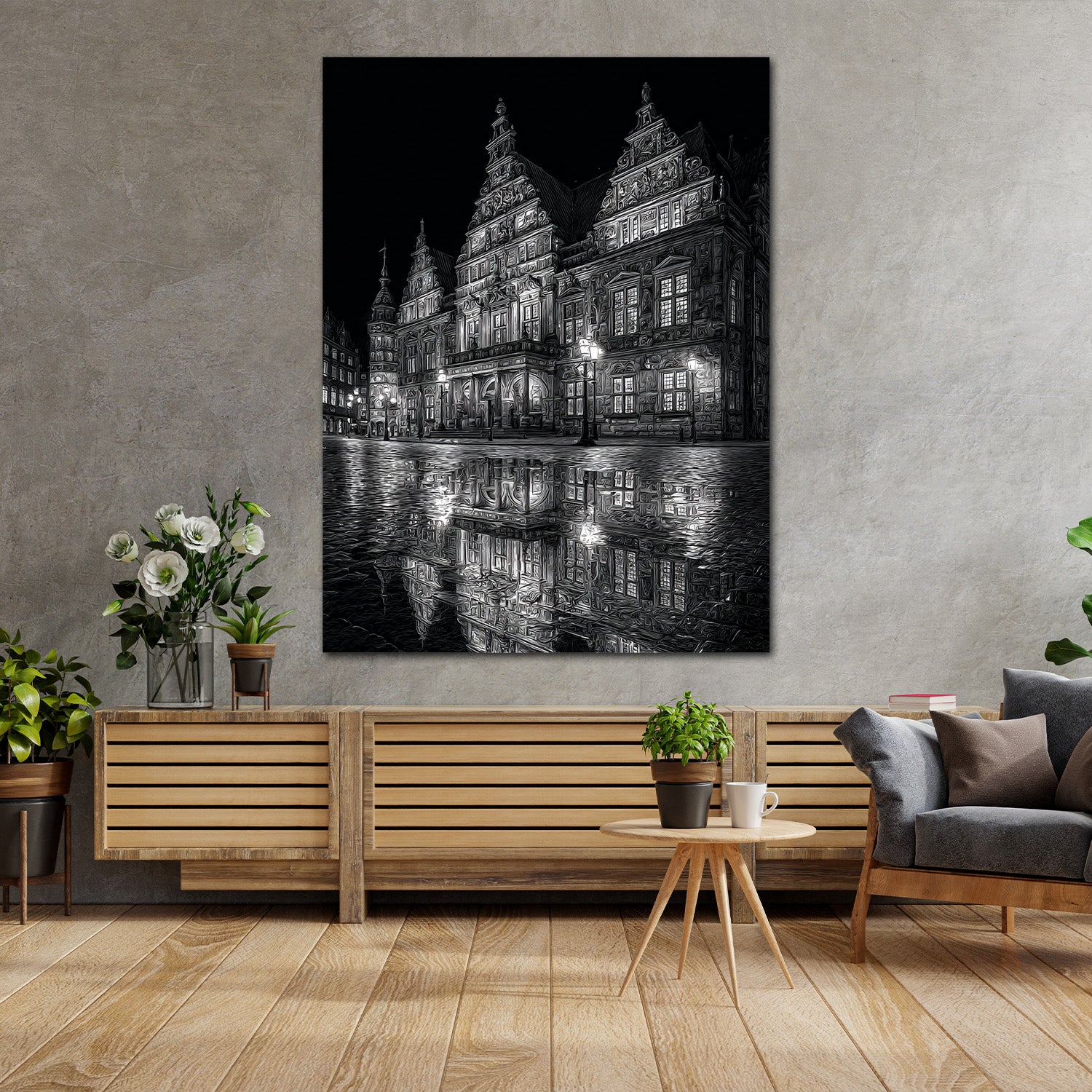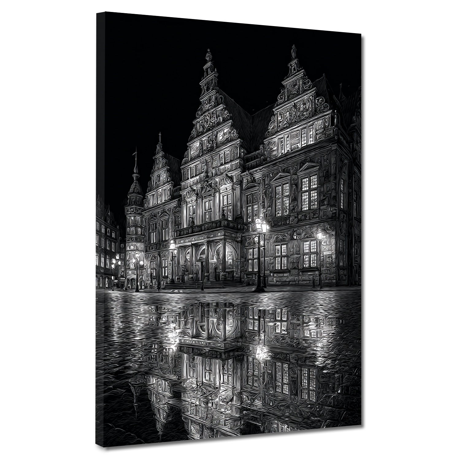 Wahrzeichen Rathaus Bremen Spiegelung schwarz weiß Wandbild