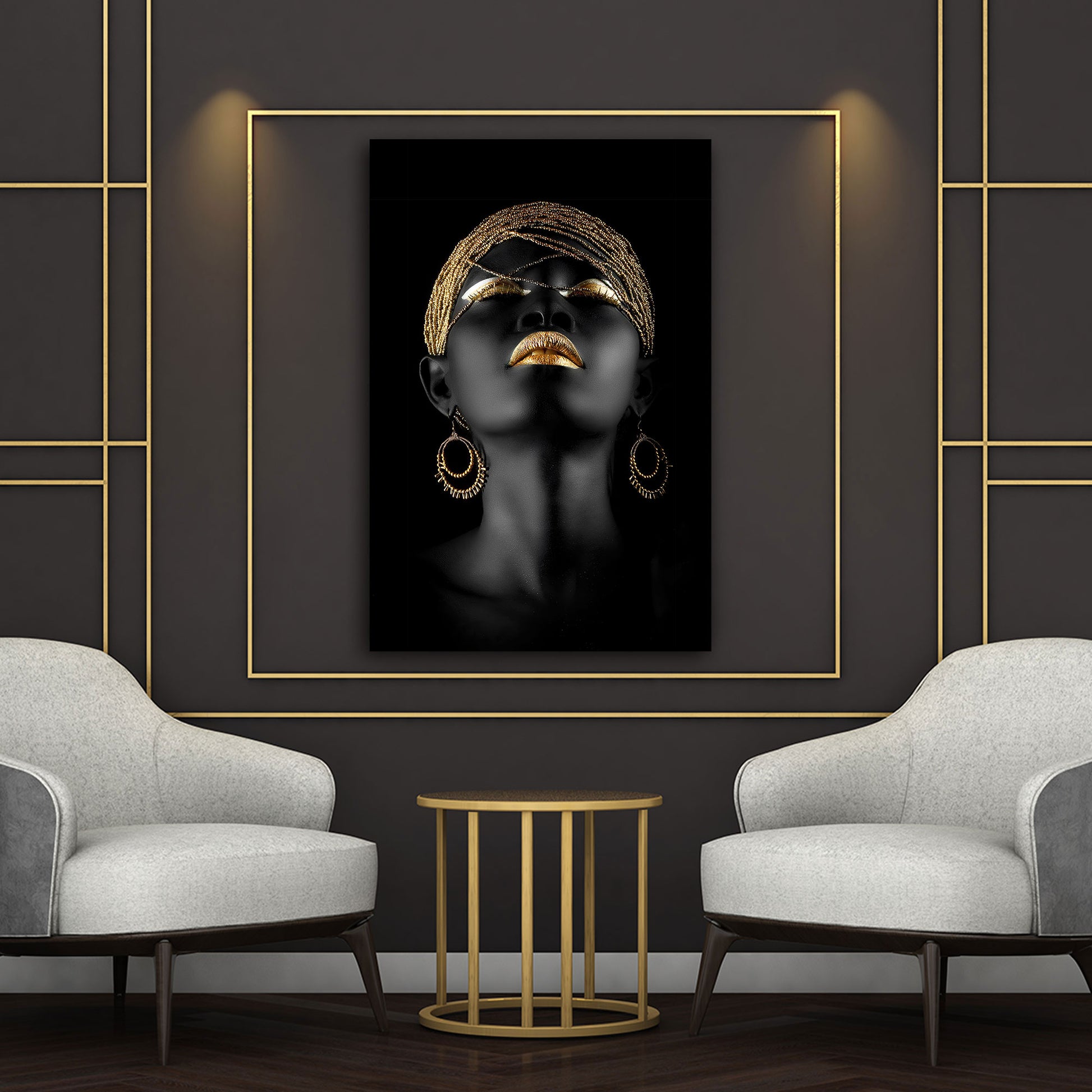 Afrikanische Frau mit goldener Eleganz und modernem Stil Wandbild Kunstwerk