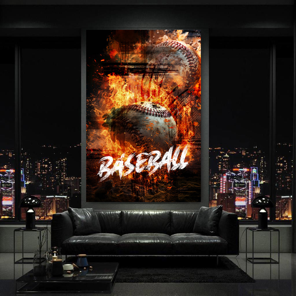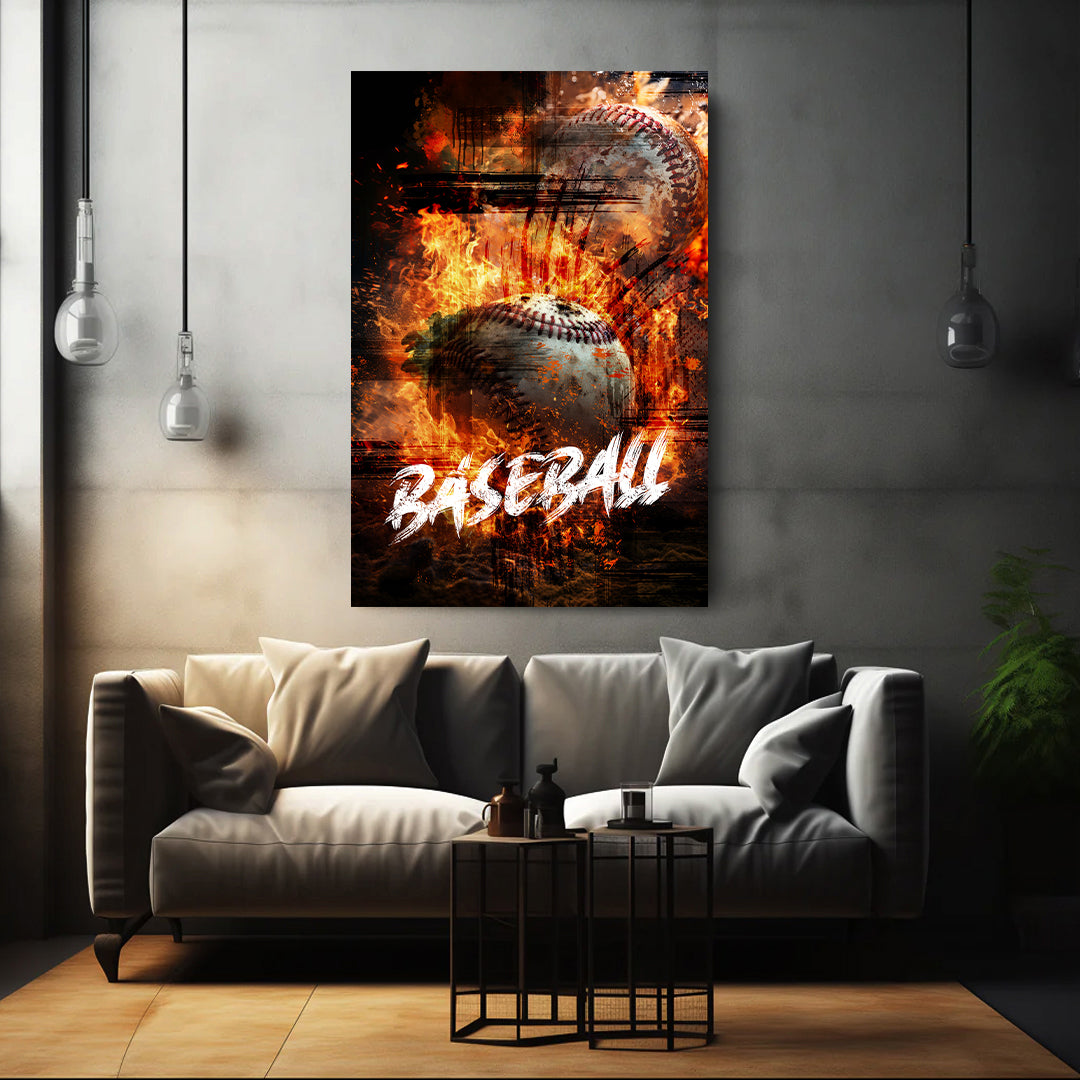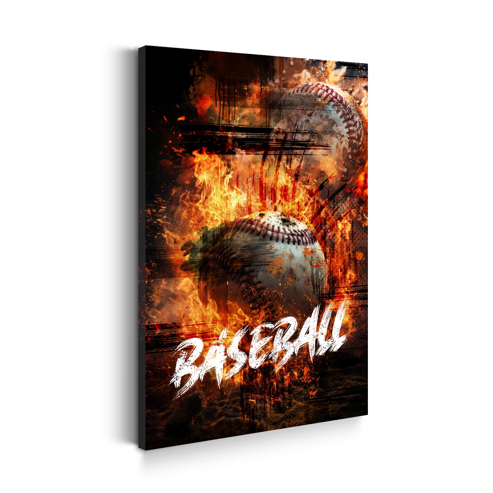 Baseball Feuerball in Flammen Wandbild Kunstwerk