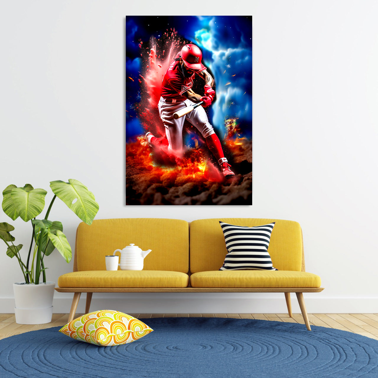 Baseball mit intensiven Farben und Bewegung Wandbild Kunstwerk