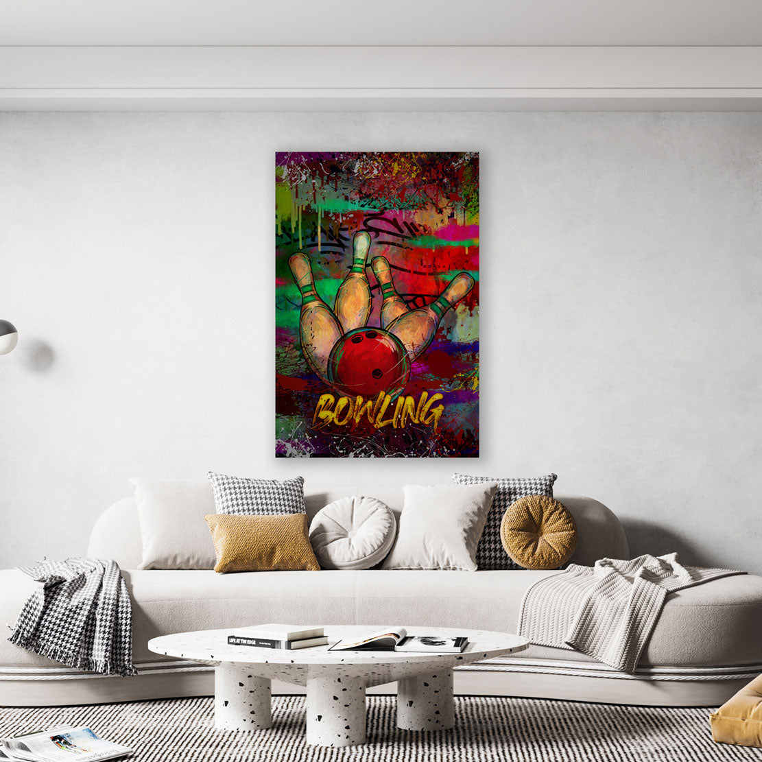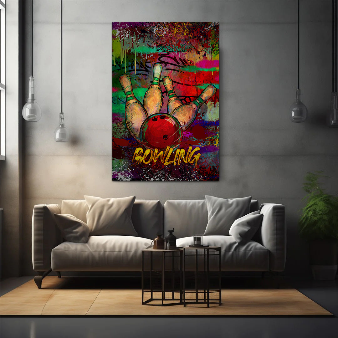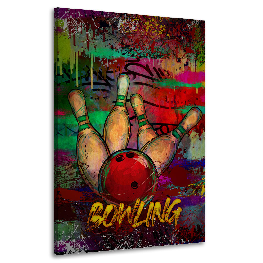 Street Art Bowlingpins und Ball in Style Wandbild Kunstwerk