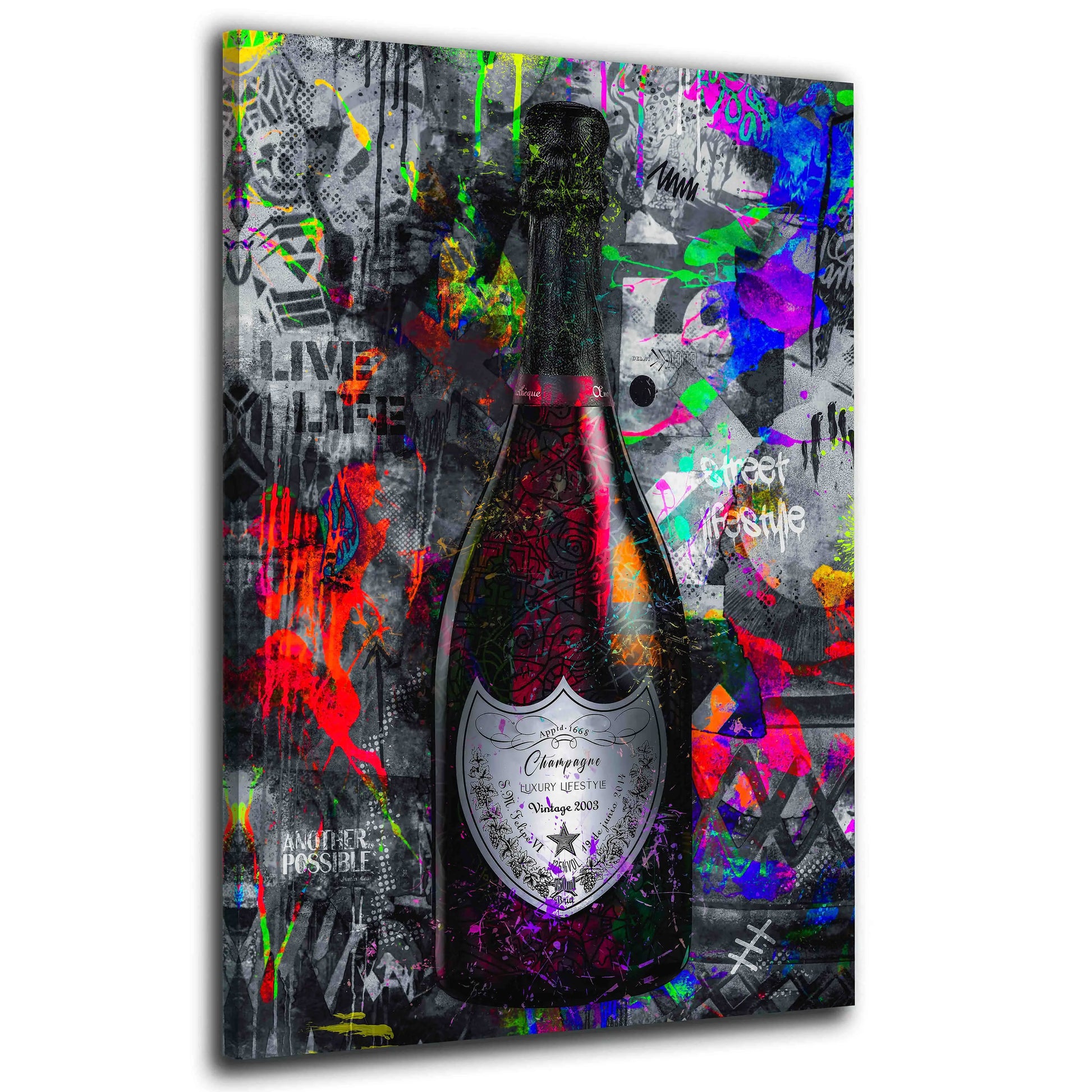 Champagner Lifestyle Street Art Flasche Wandbild Kunstwerk