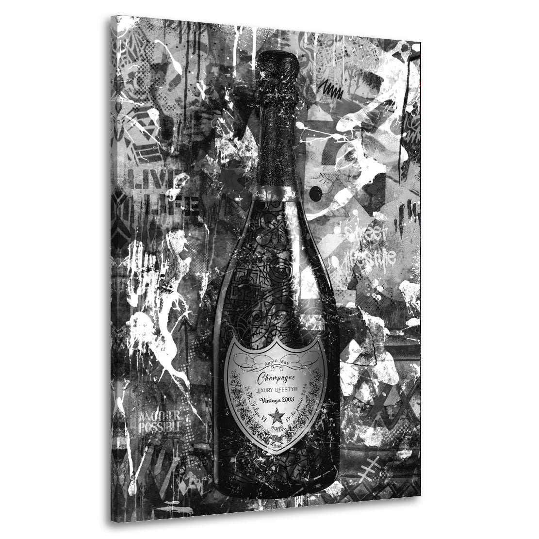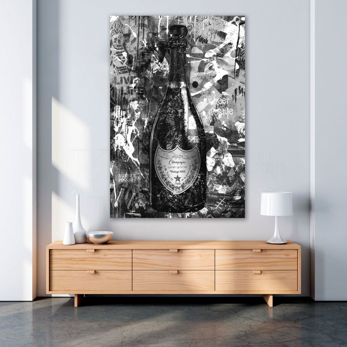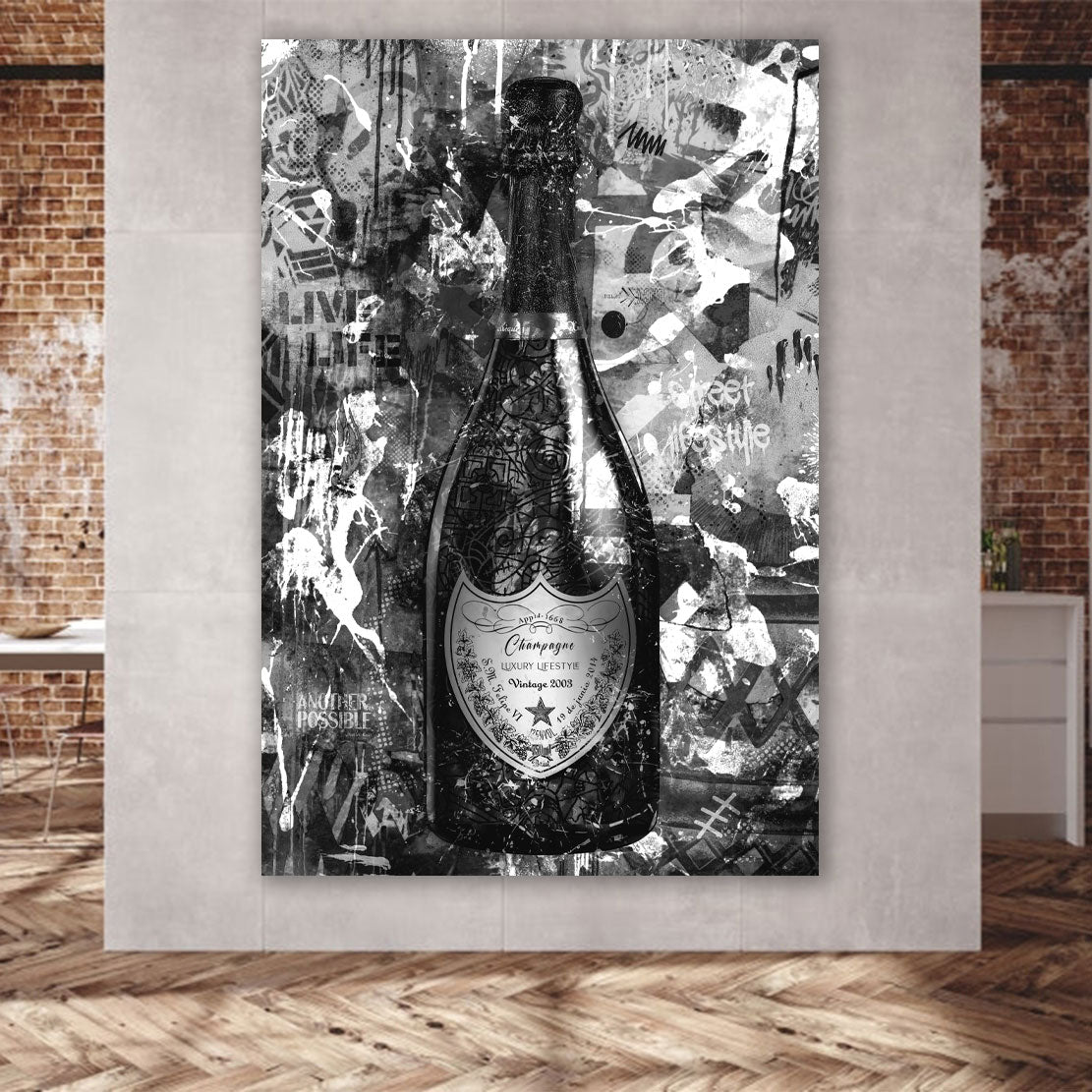 Champagner Lifestyle Street Art Flasche, schwarz & weiß Wandbild Kunstwerk