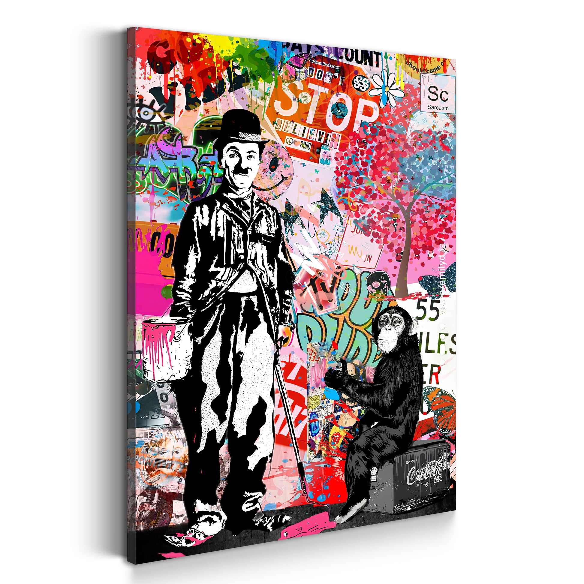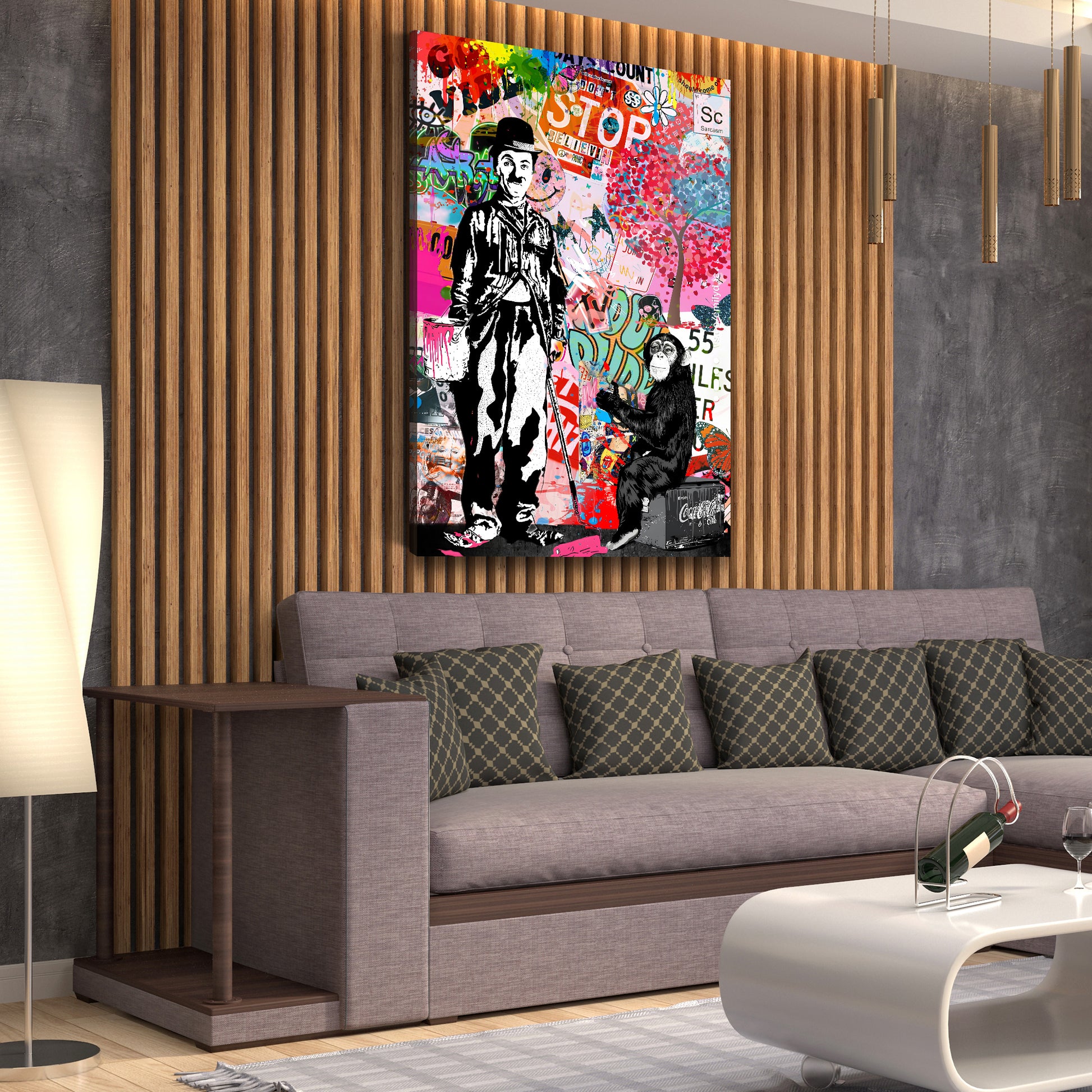 Charlie und Affe im bunten Graffiti Style Wandbild Kunstwerk