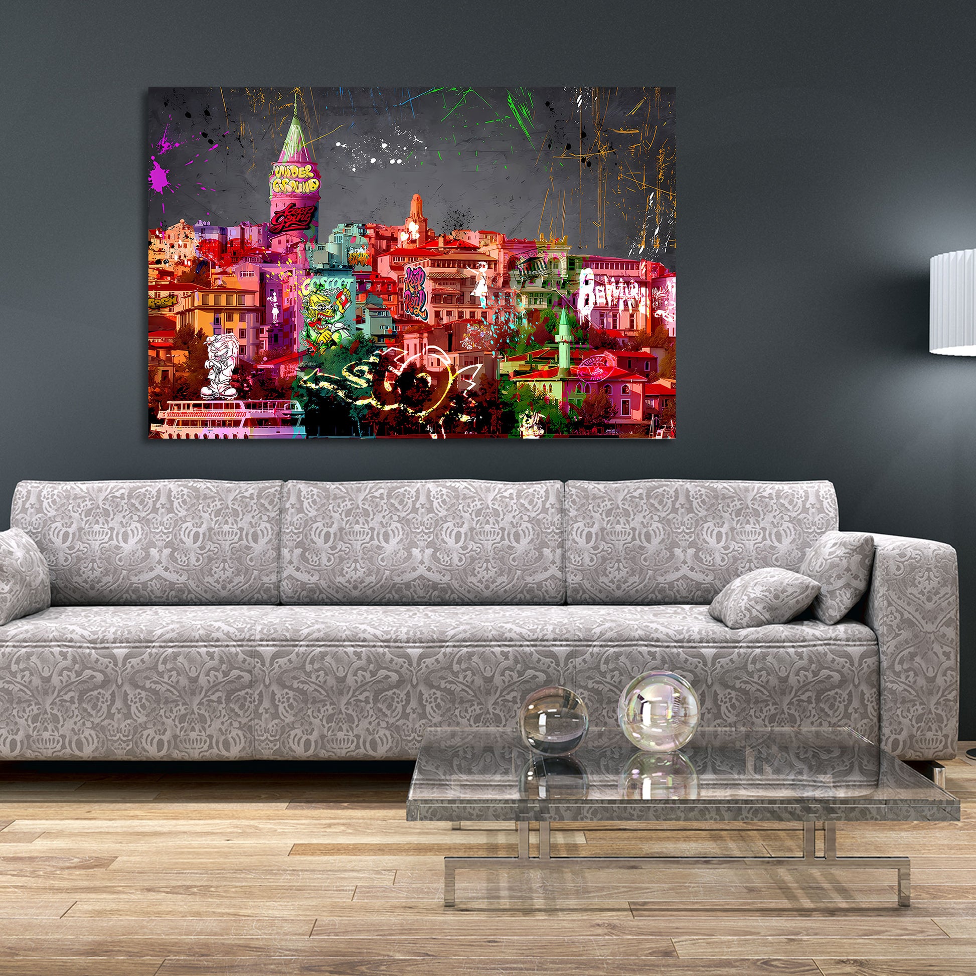 Farbige Skyline Istanbul Graffiti Art Wandbild Kunstwerk