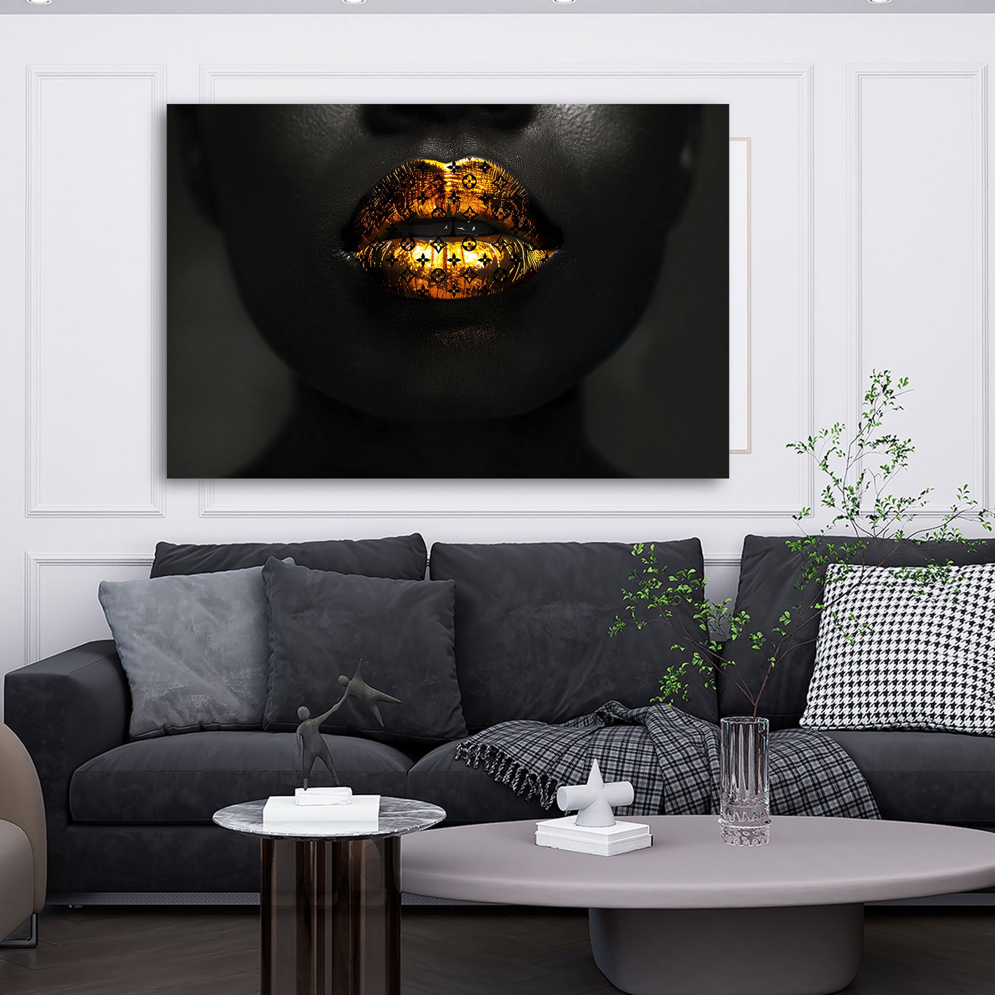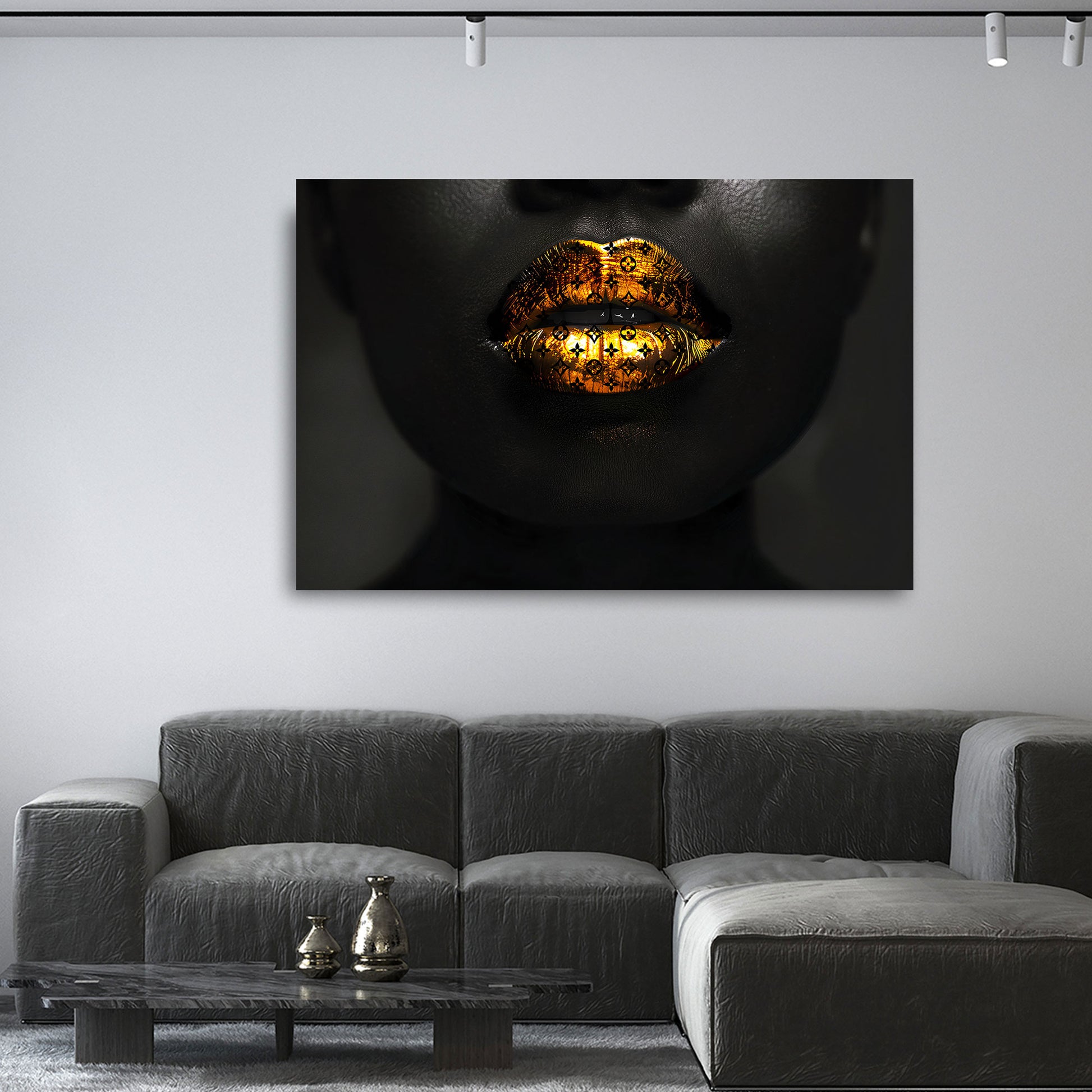 Glamouröse Lippen in Goldoptik Luxus Style Wandbild Kunstwerk