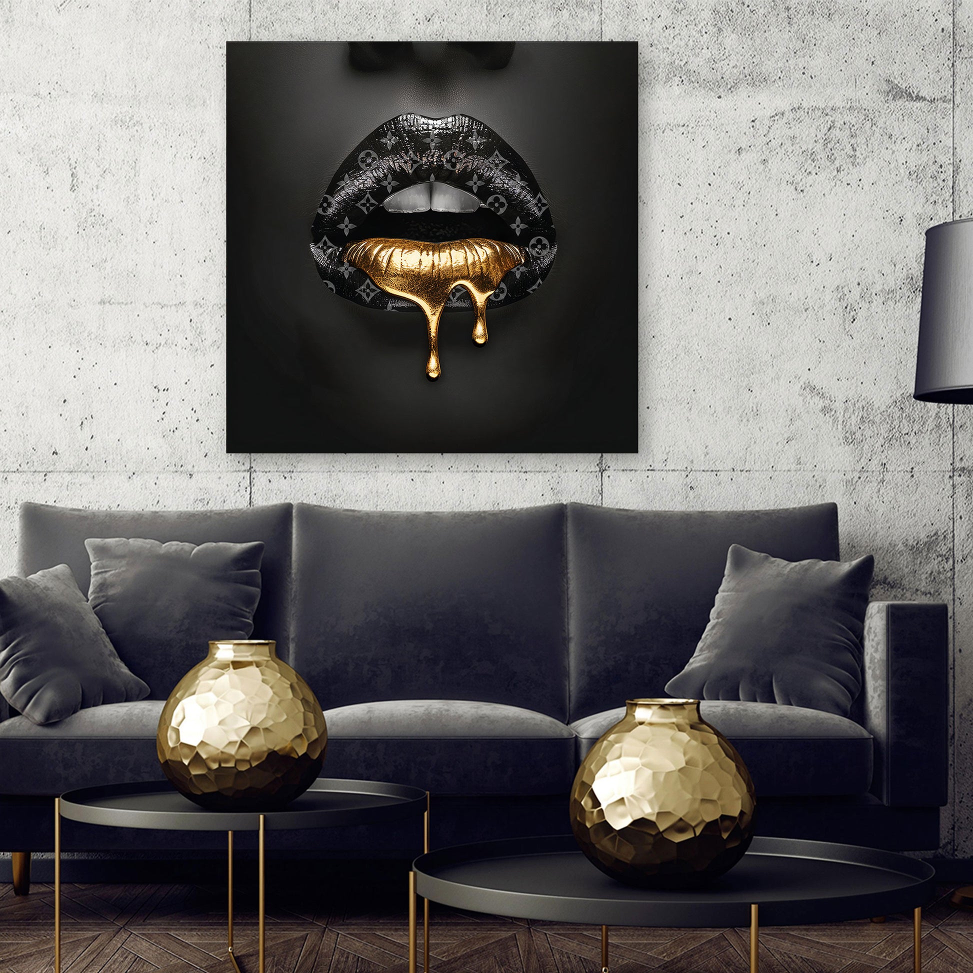 Goldene Lippen und luxuriöse Ästhetik Wandbild Kunstwerk