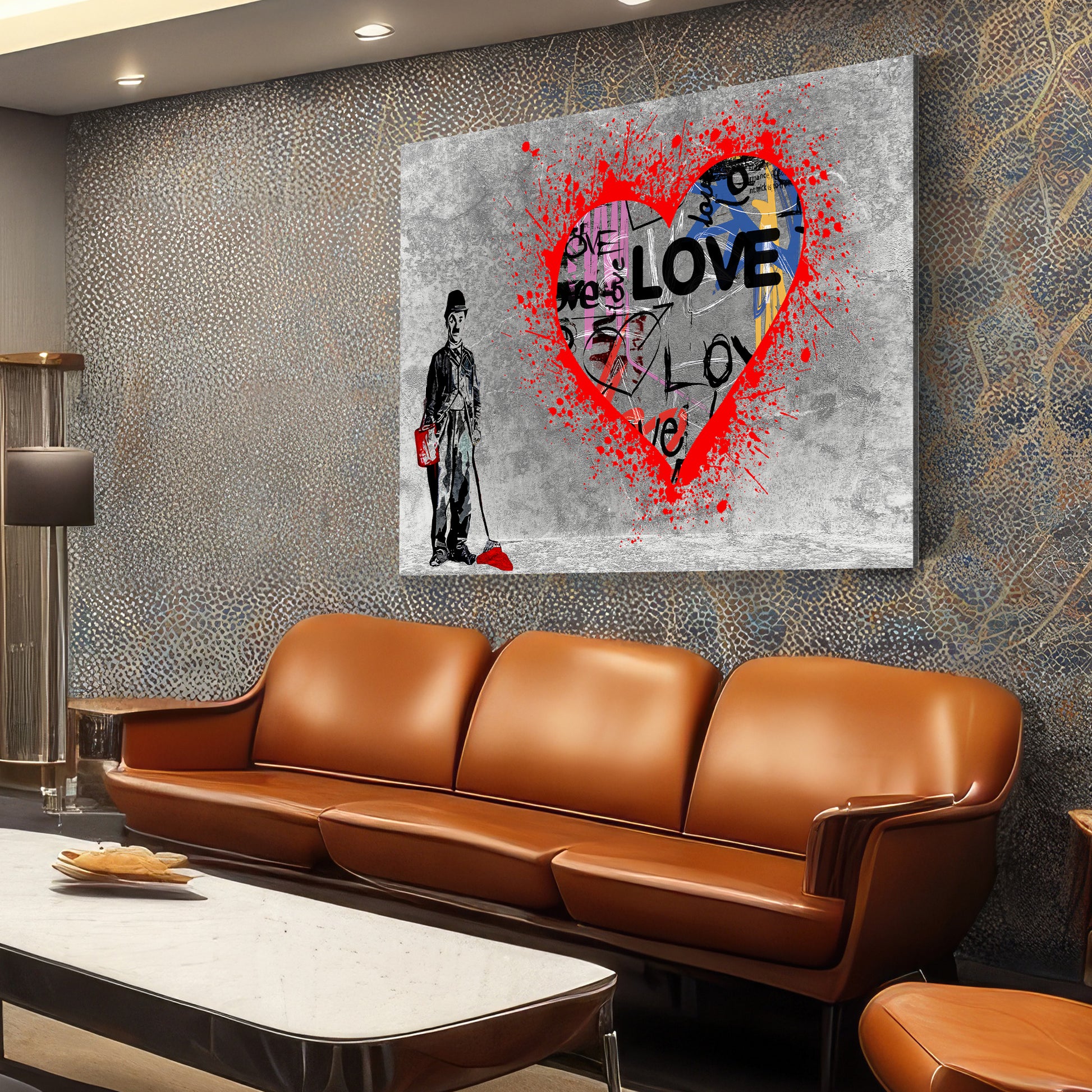 Pop Art Graffiti rotes Herz Charlie Love Wandbild Kunstwerk