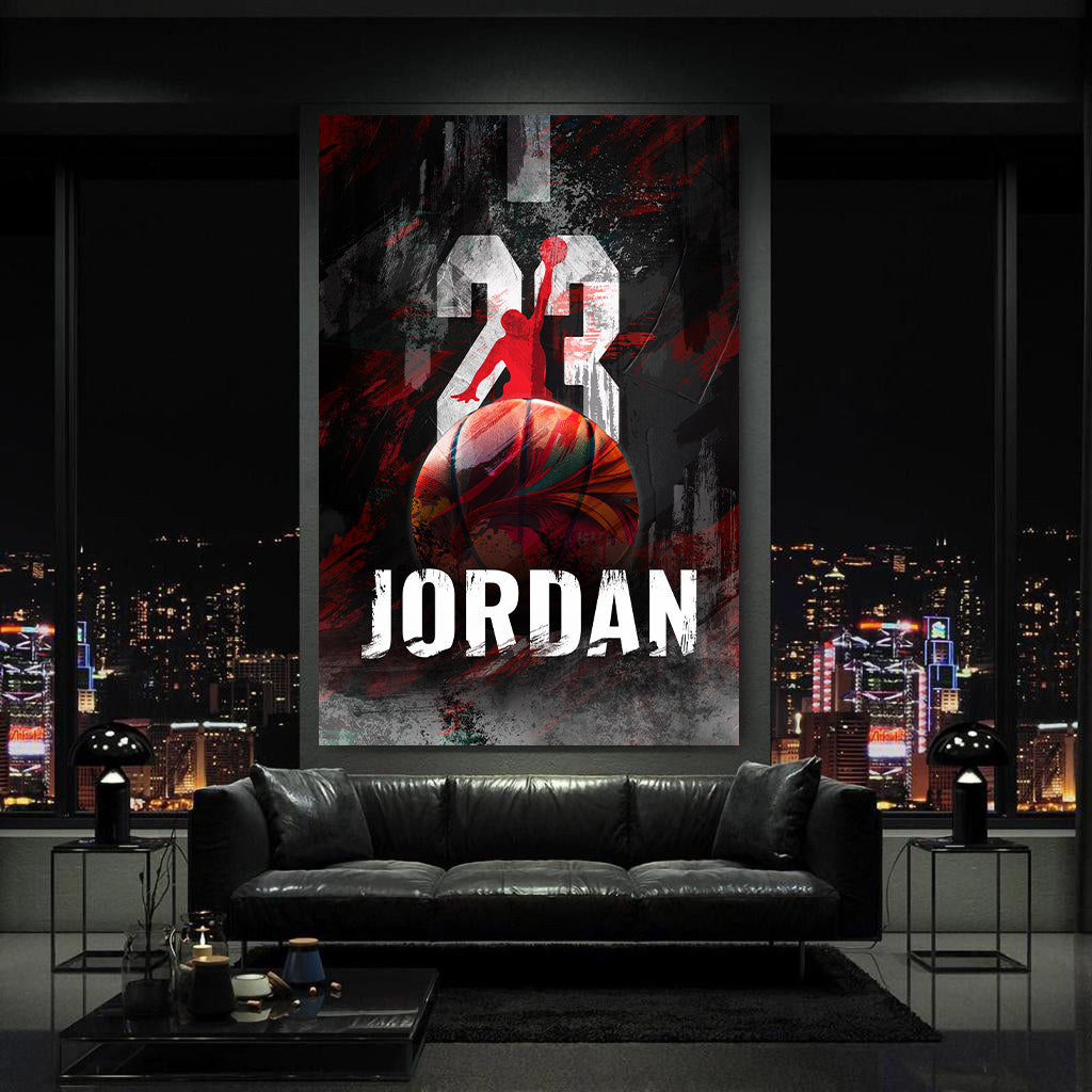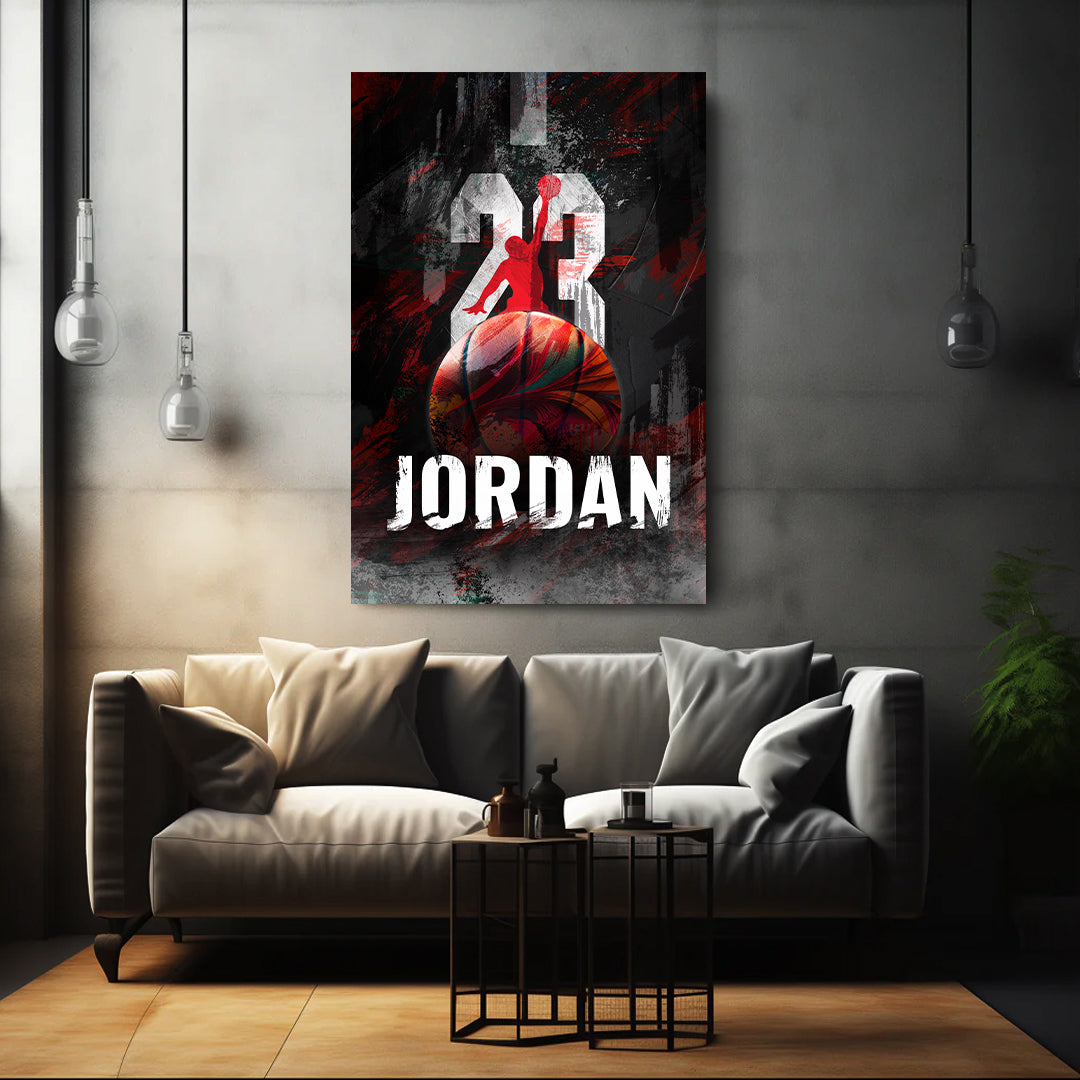 Pop Art Basketballlegende Jordan in Schwarz-Rot Wandbild Kunstwerk