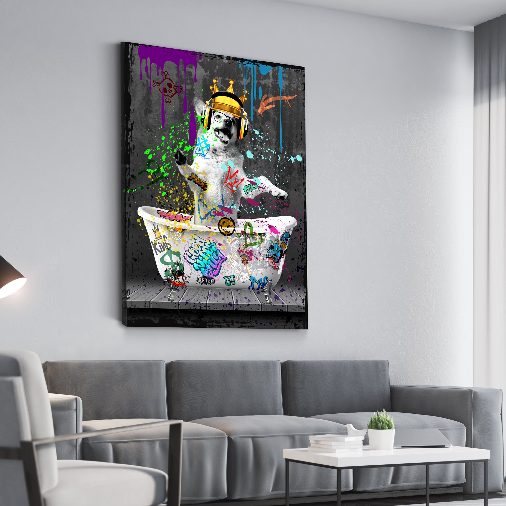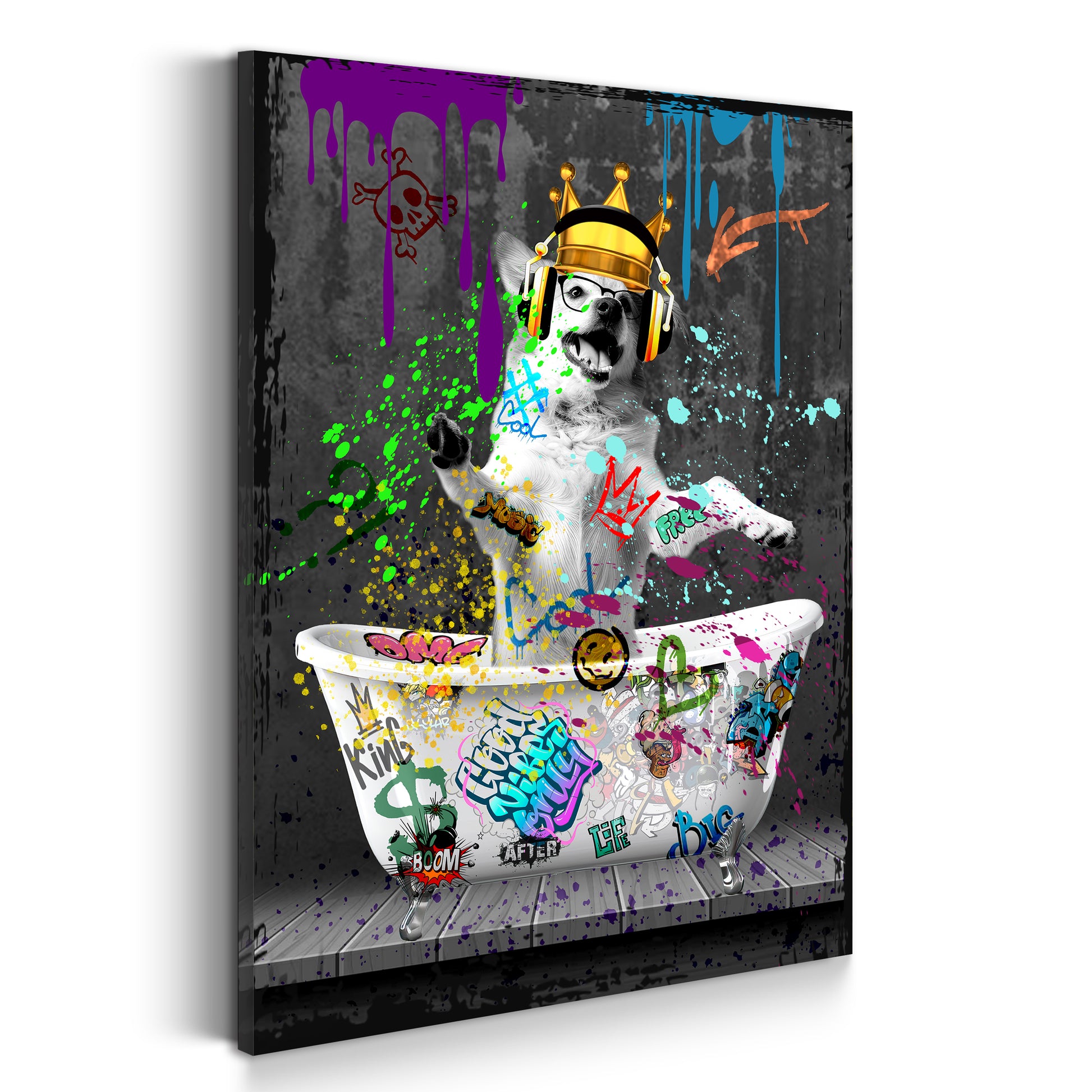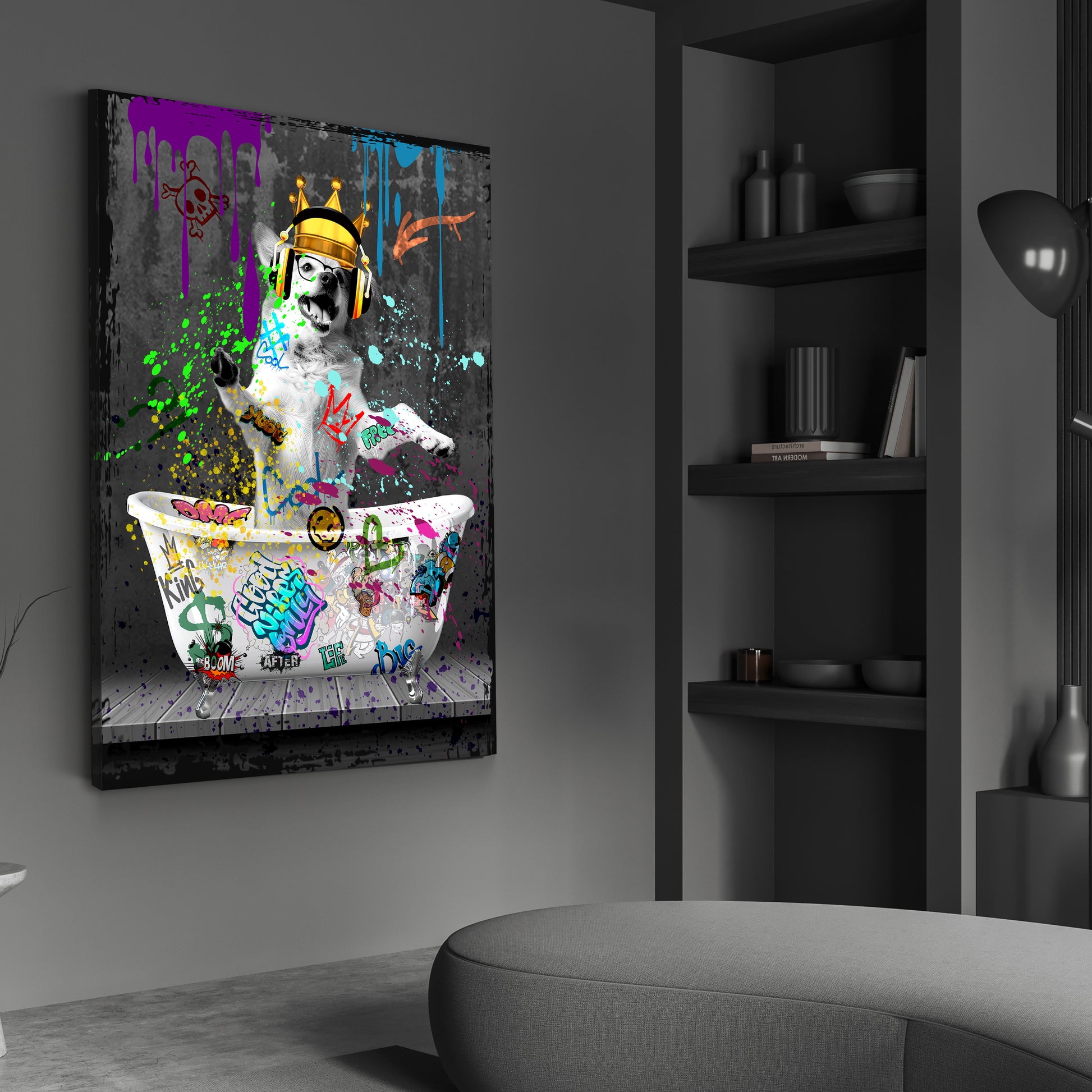 Pop Art Hund mit Krone Graffiti Look Wandbild Kunstwerk