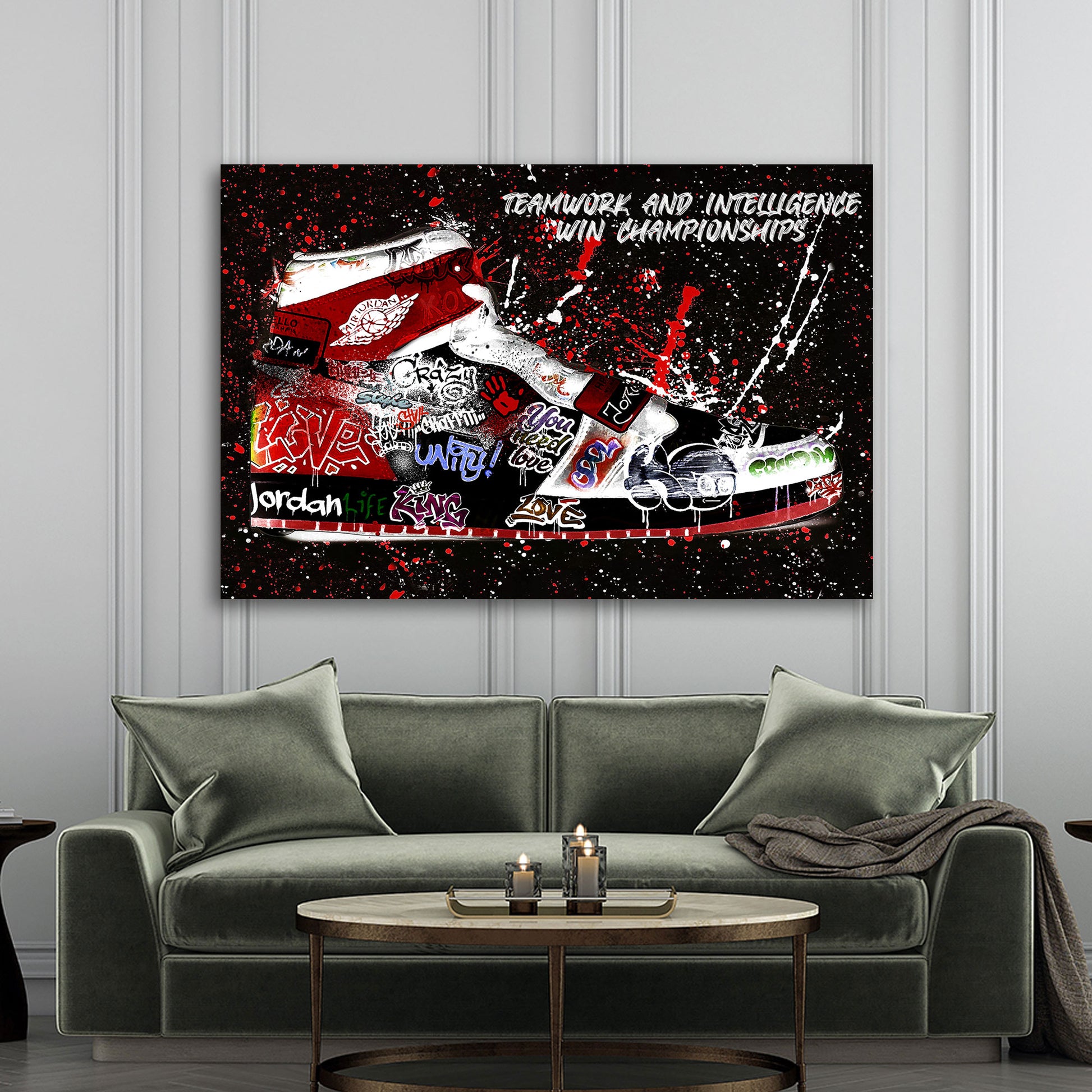 Pop Art Sneaker mit Zitat und Motivation Basketball Sport Wandbild Kunstwerk