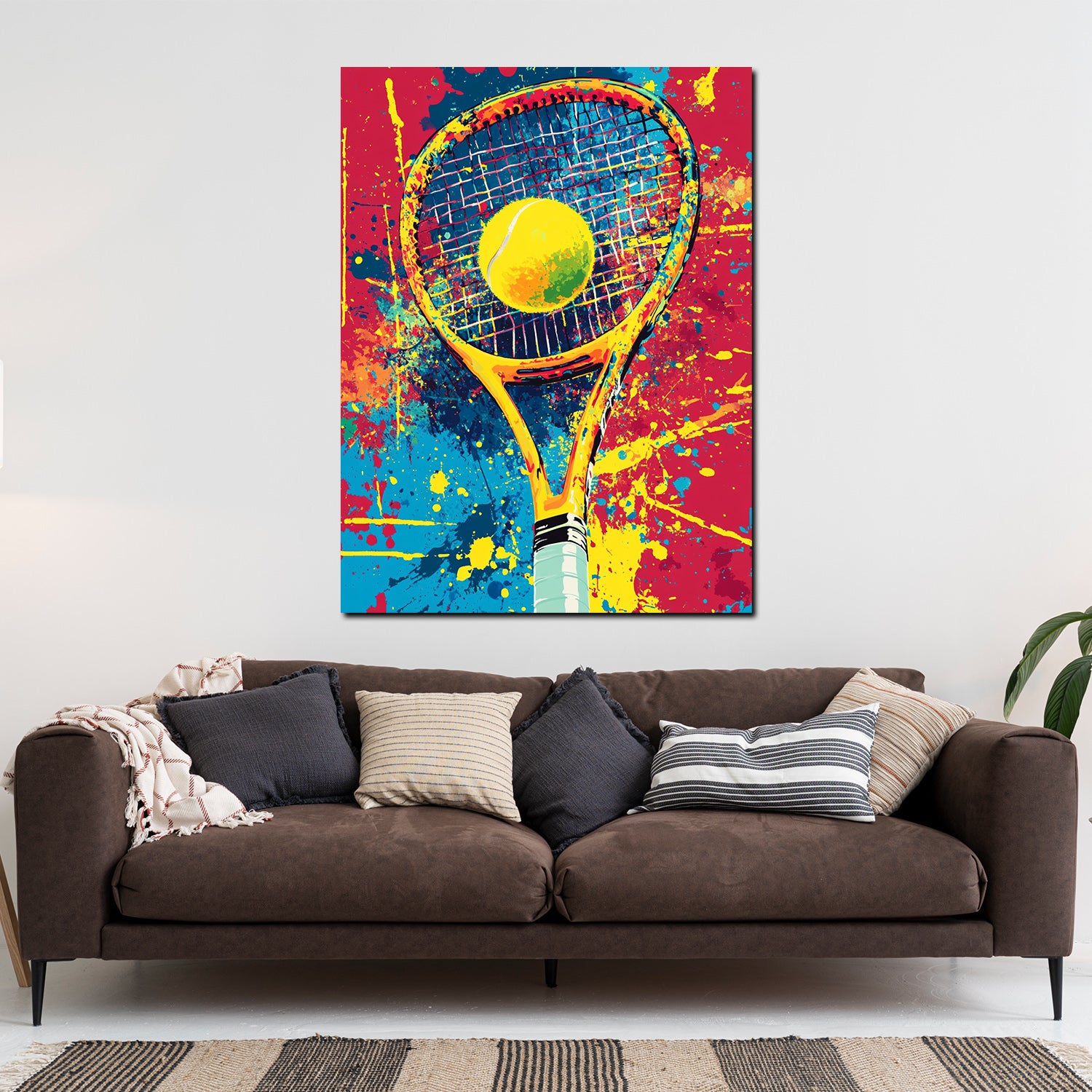 Pop Art Tennis bunt Schläger mit Ball sportlich Wandbild Kunstwerk