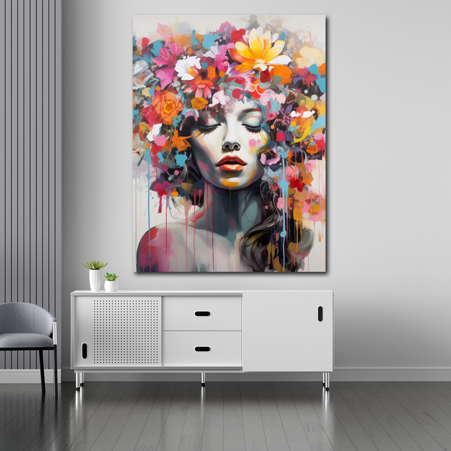 Pop Art wunderschöne Frau Flower Style Wandbild Kunstwerk