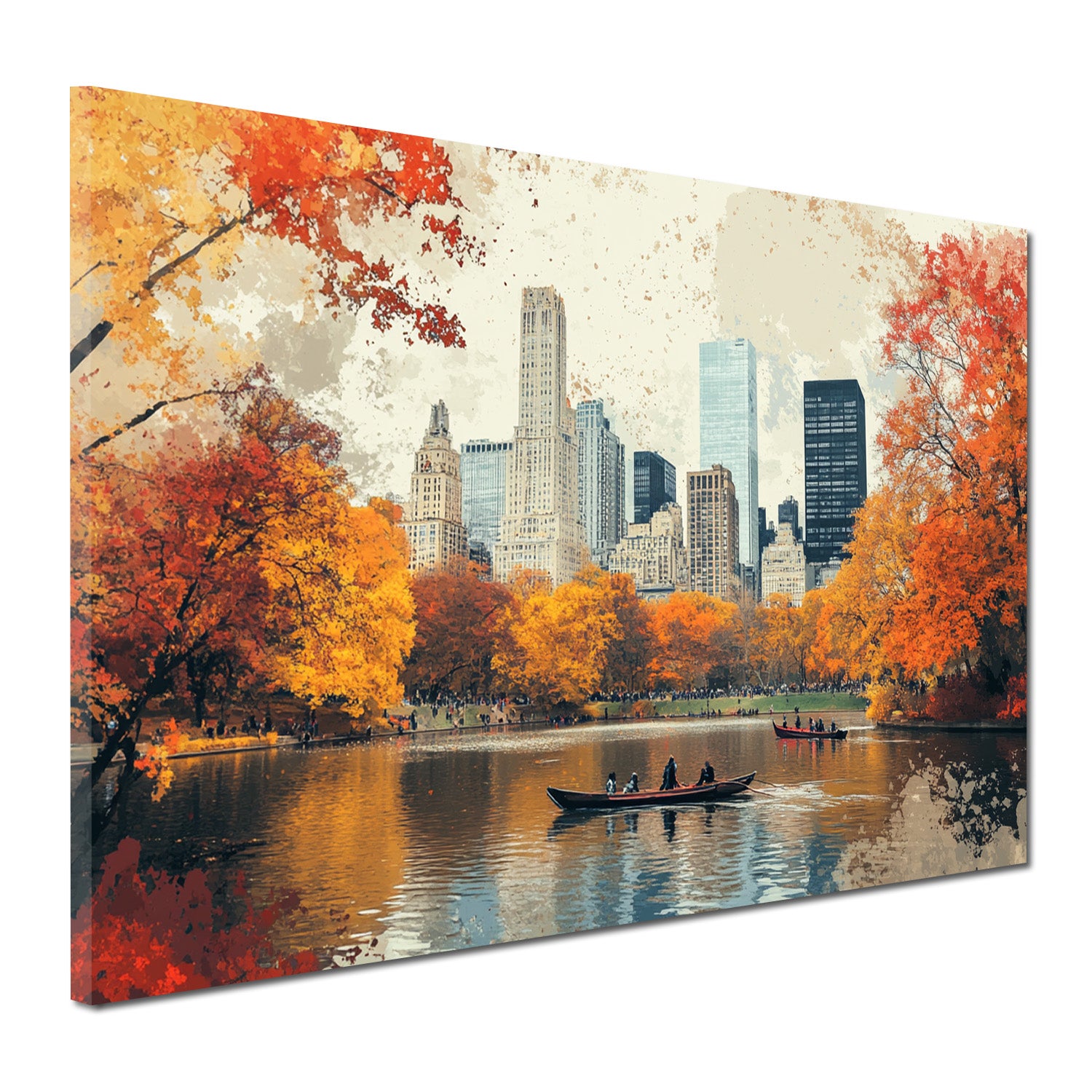 Städte New York Park Boote Herbstfarben Spiegelung Wandbild Kunstwerk