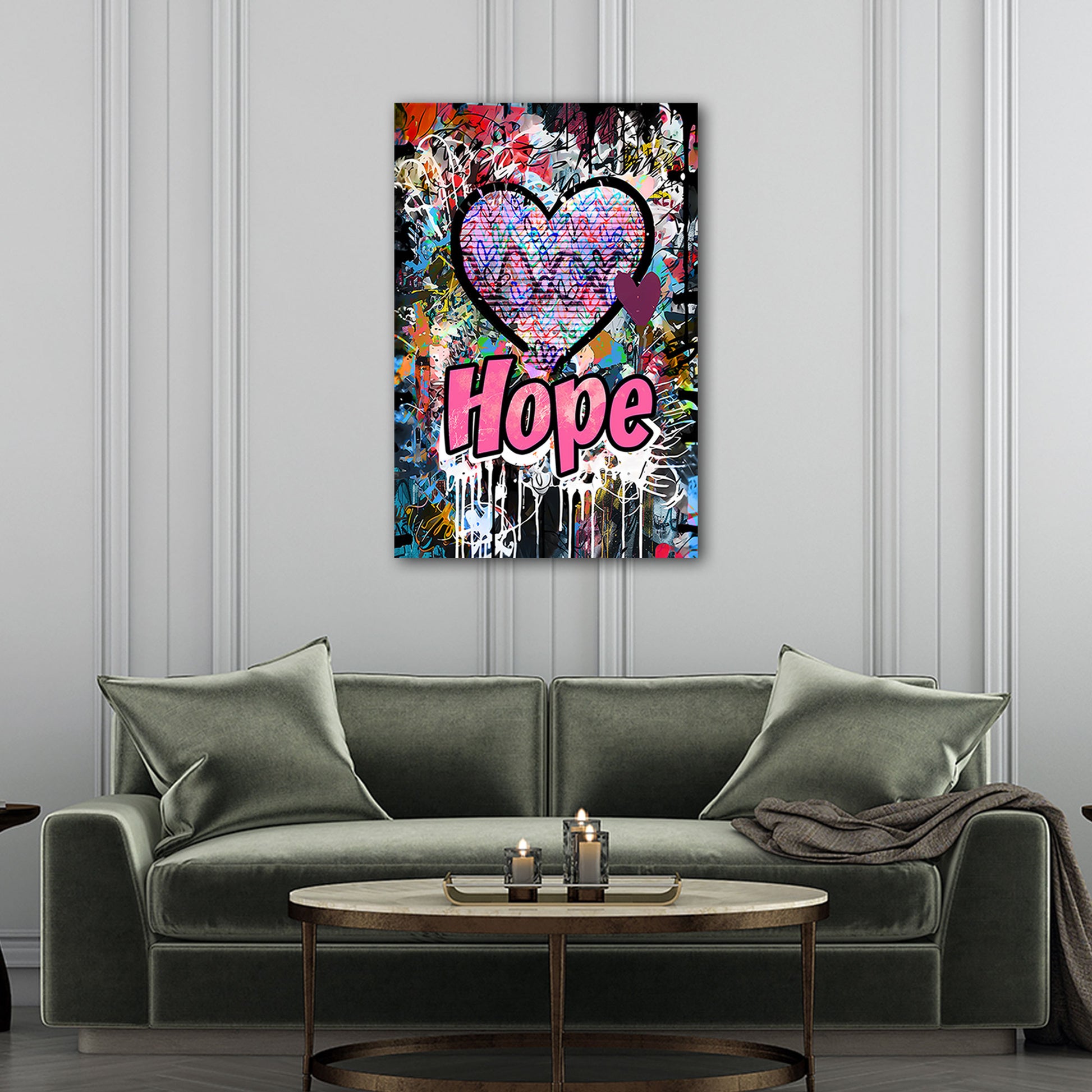 Street Art Herz und Hope Schriftzug Wandbild Kunstwerk