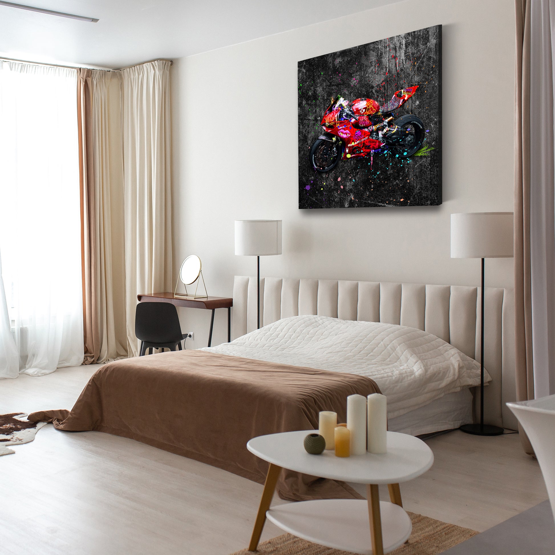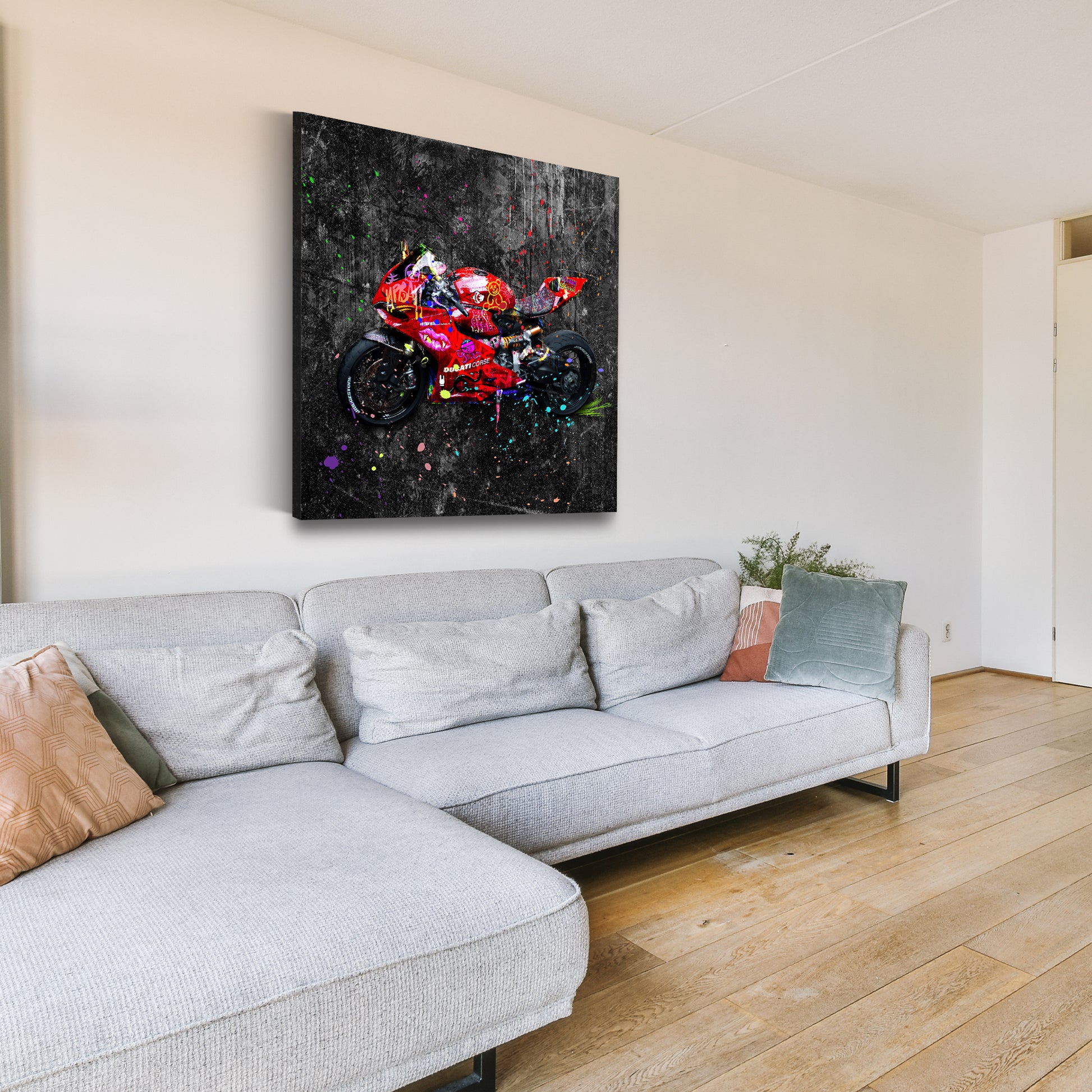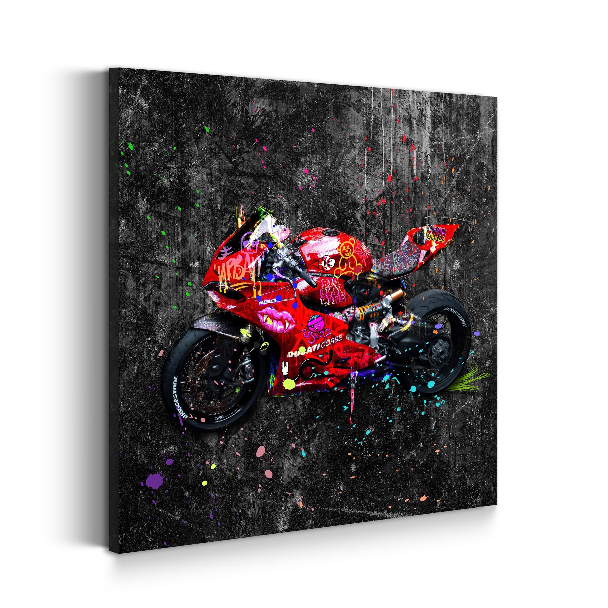 Street Art rotes Motorrad Colour Splash Wandbild Kunstwerk