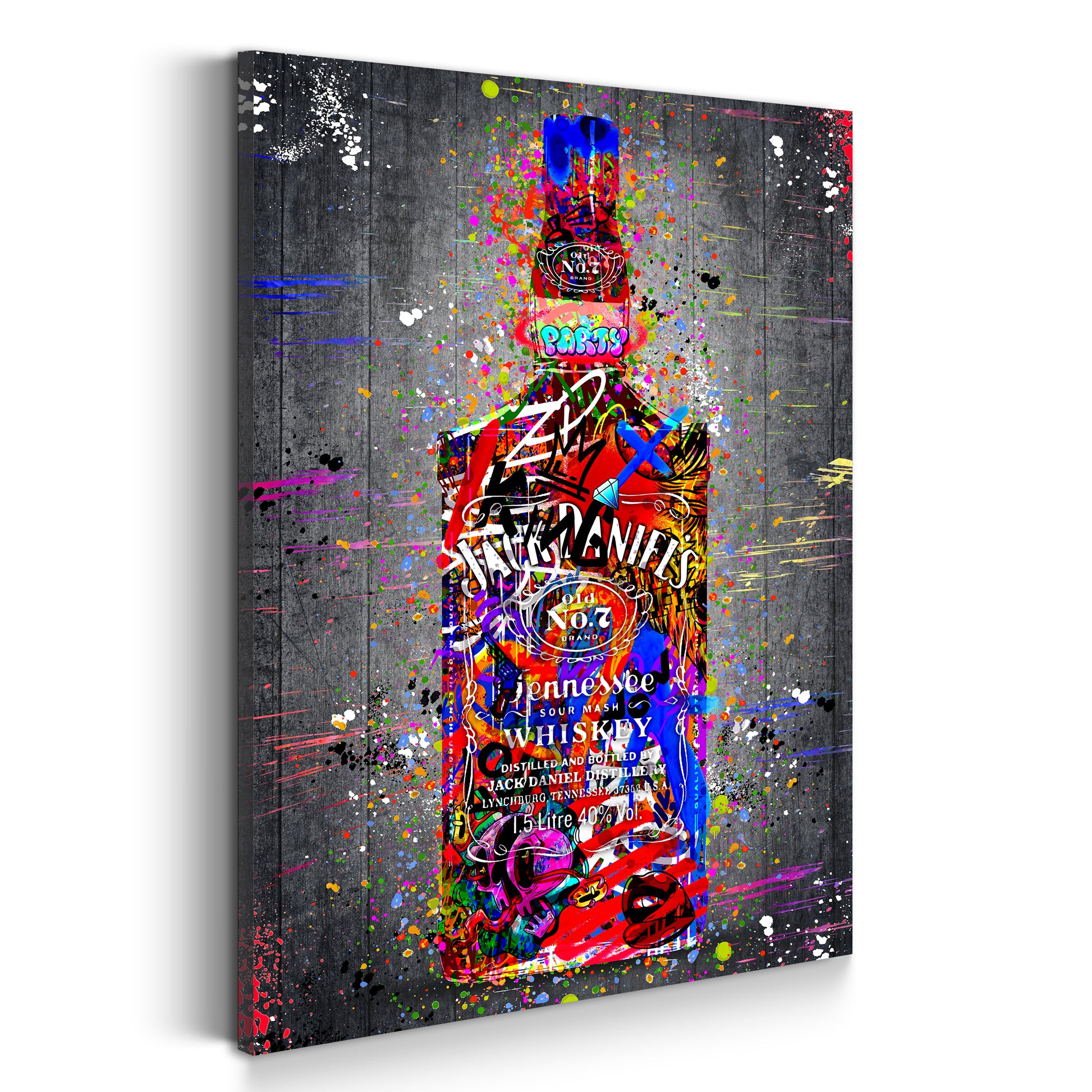 Whiskyflasche Street Art Stil bunte Graffiti Elemente Wandbild Kunstwerk
