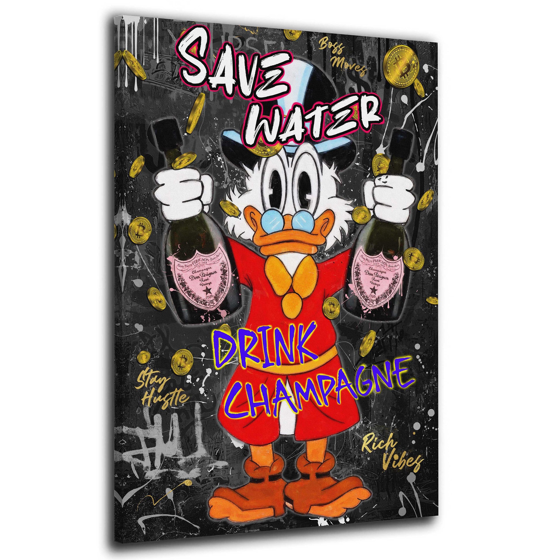 Pop Art Duck Save Water Champagner Luxus Erfolg Wandbild Kunstwerk