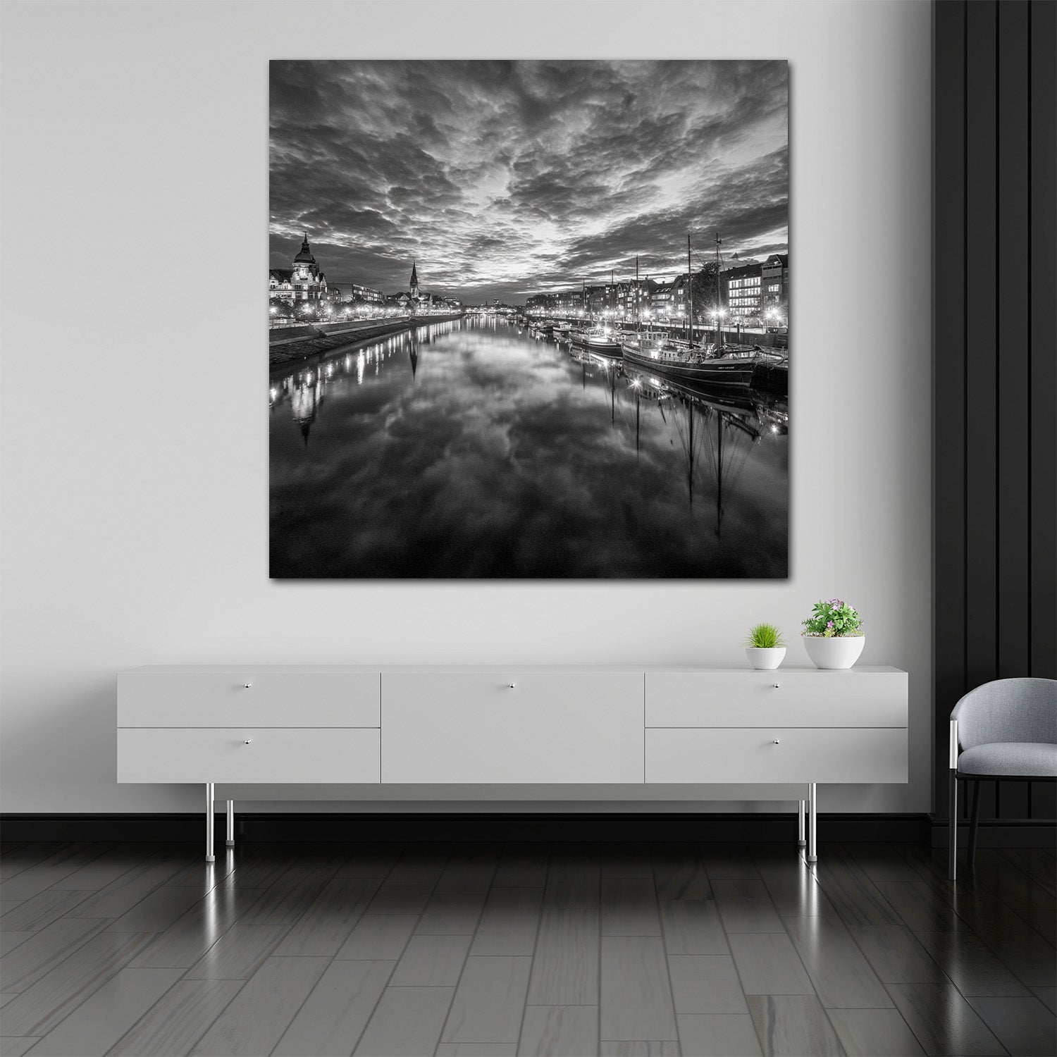 Weserblick Bremen mit historischen Gebäuden schwarz weiß Wandbild